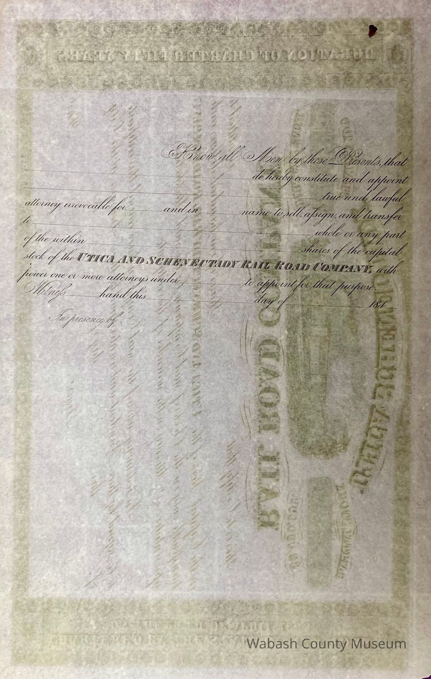 Utica Schenectady Rail Road Company - Stock CertificateEntry/Object ID