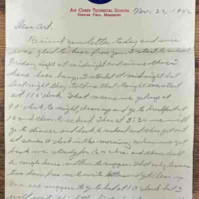 Letter - Pvt. Eugene Haupert to Arthur Haupert (Nov 22, 1942)