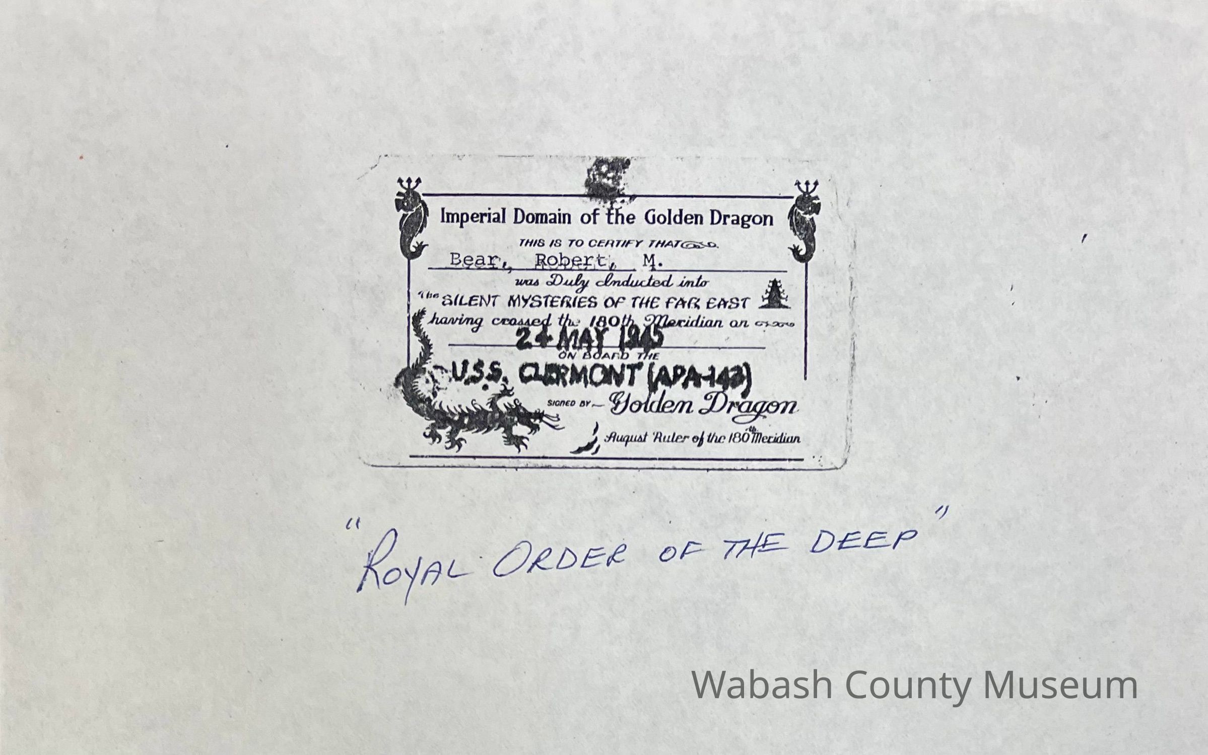 An unofficial award given to crew members of ships which cross the International Date Line. A sailor enters the dragon's empire when they cross the International Date Line by sailing west, where Asian nations celebrate the power of the dragon. The certificate is an unofficial award of the United States Navy and the United States Coast Guard.