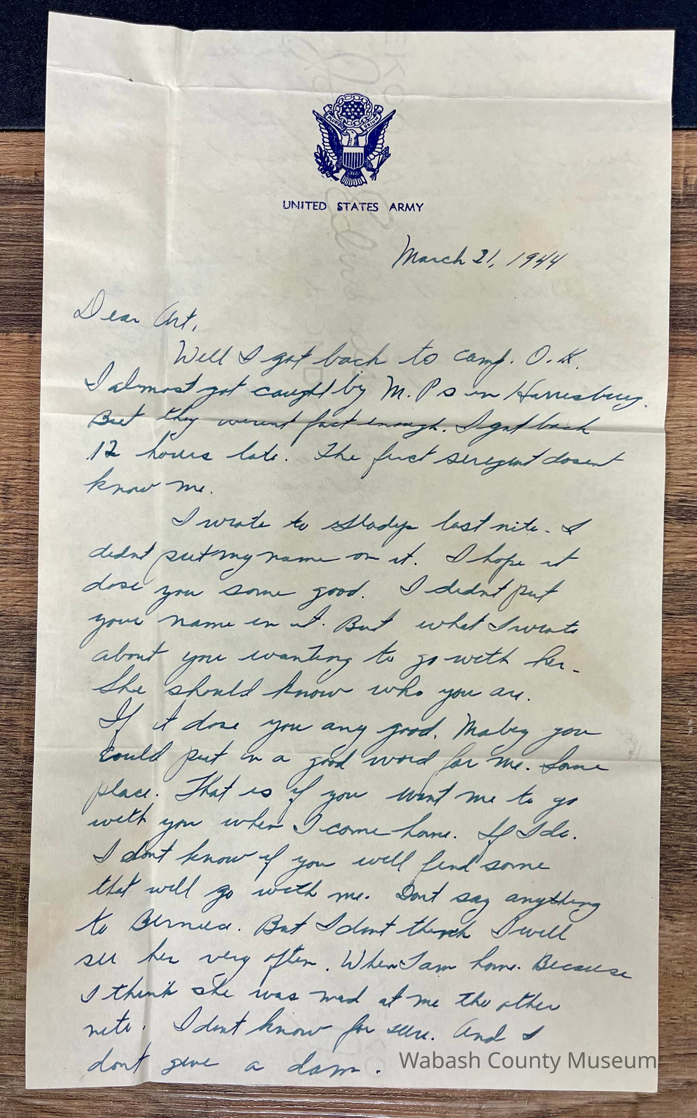 Letter - Pfc. John C, Schmalzried (35362335) to Arthur Haupert (Mar. 22, 1944)