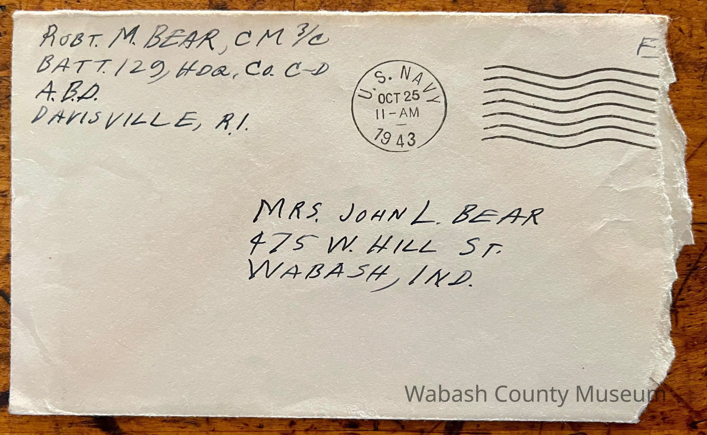 Postmark on envelope reads: US Navy, Oct. 25, 1943 | 11:00AM
