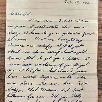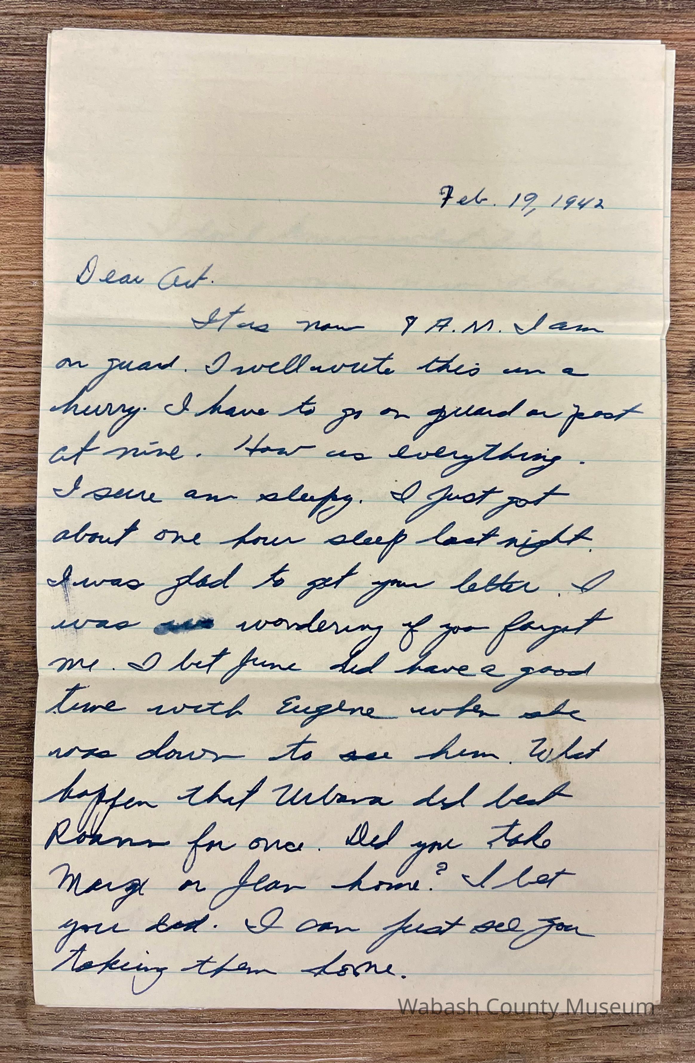 Letter - PFC. John C. Schmalzried to Arthur Haupert (Feb. 19, 1943)Entry/Object ID