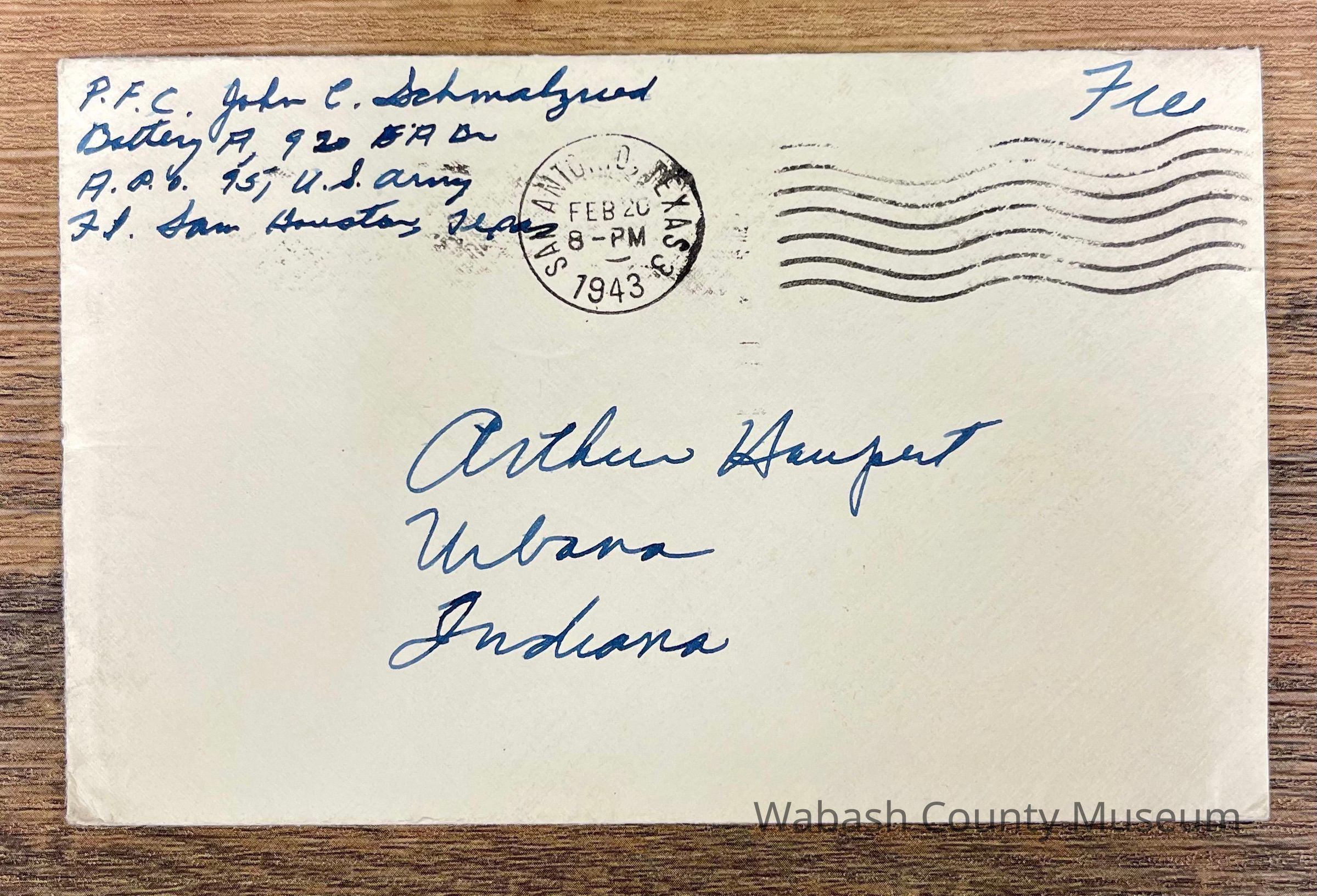 Letter - Pvt. John C, Schmalzried to Arthur Haupert (Feb. 19, 1943)