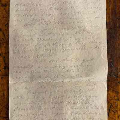 Letter is written on lightweight stationary and is hand written, unlined and one page in length and written on one side.