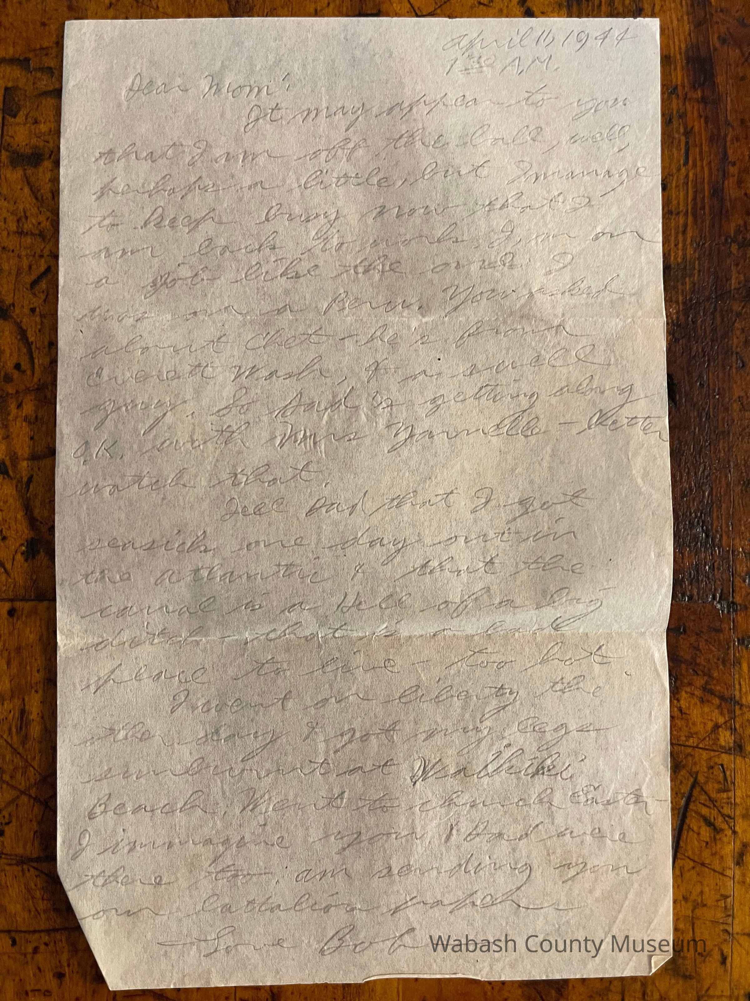 Letter - Robert Milner Bear to Mom, Mrs. John L. Bear (Postmarked Apr.11, 1944)Entry/Object ID