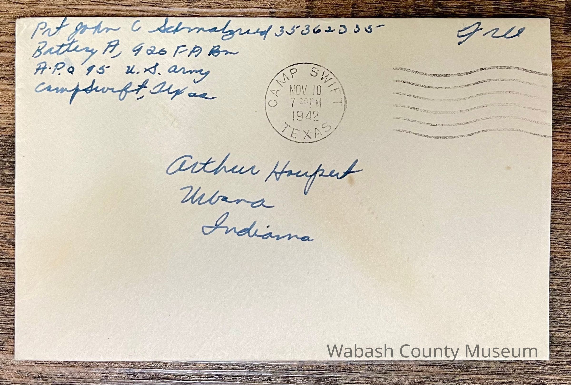 Letter - Pvt. John C. Schmalzried (35362335) to Arthur Haupert (Nov 9, 1942)Entry/Object ID