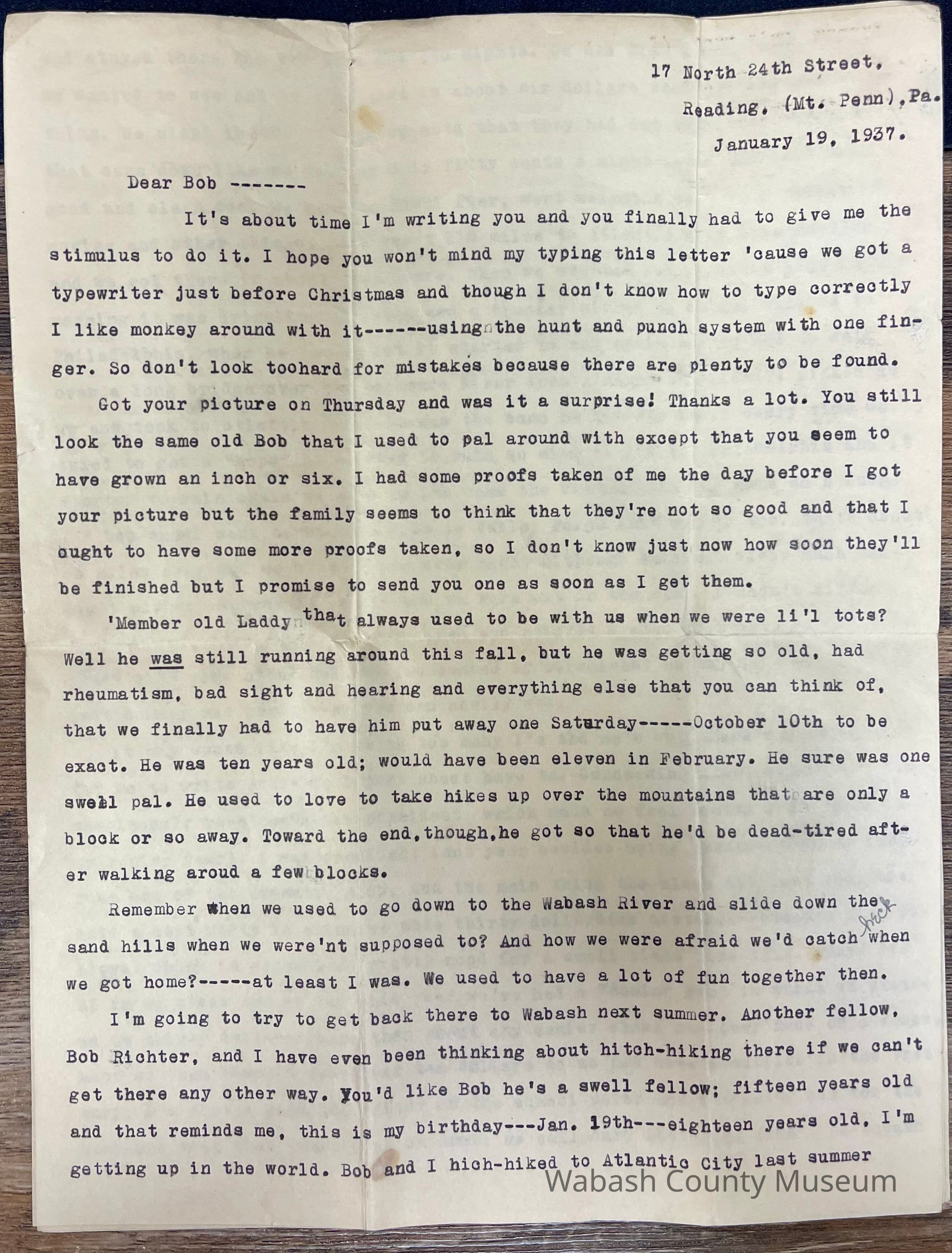 Letter - Robert Milner Bear's Friend John to Robert Milner Bear's (January 19, 1937)