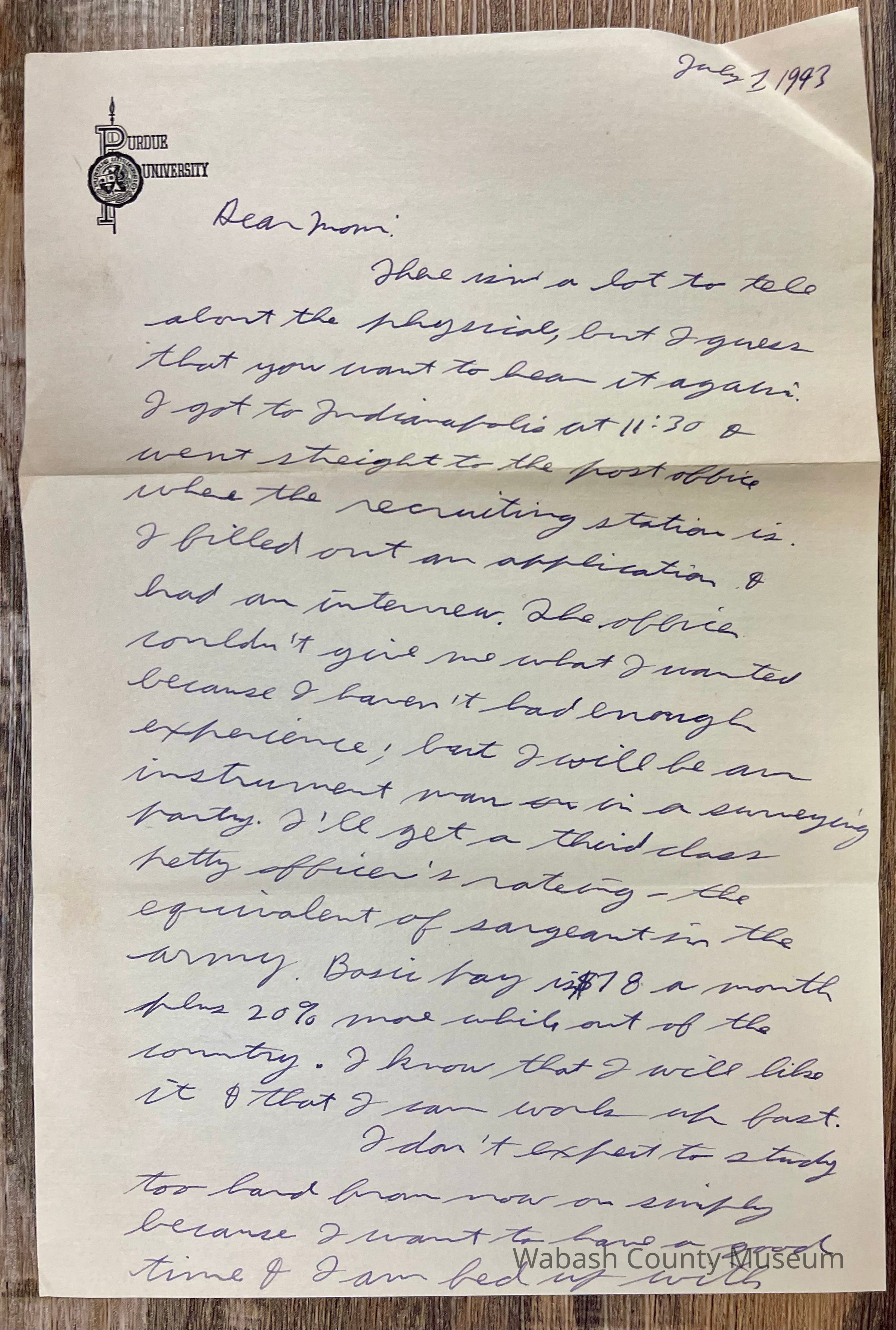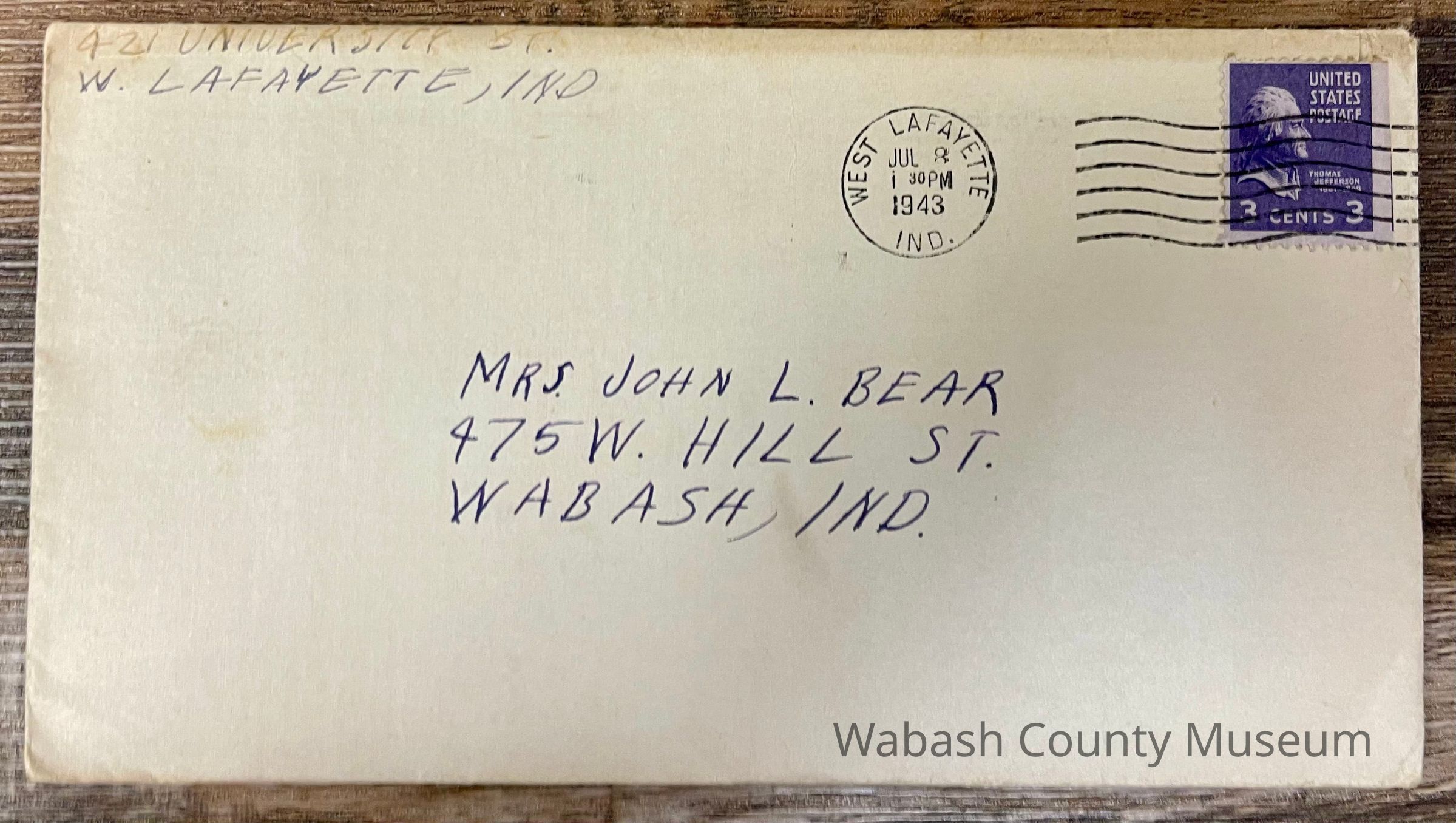 Postmark on envelope reads: West Lafayette, IND. Jul. 8, 1943 | 1:30PM