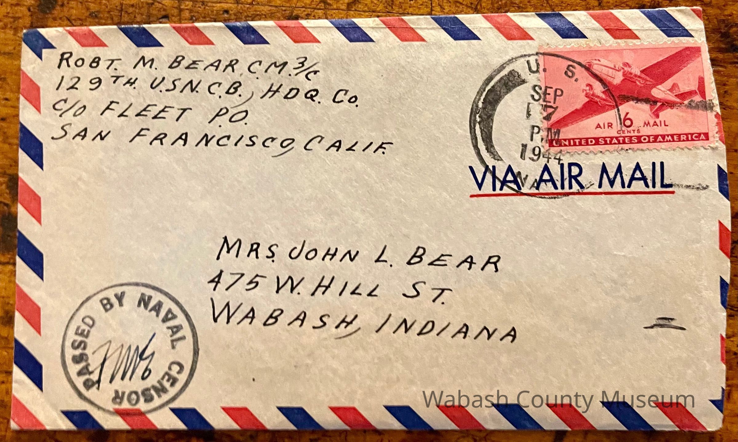 Letter - Robert Milner Bear to Mom, Mrs. John L. Bear (Postmarked Sep. 17, 1944)