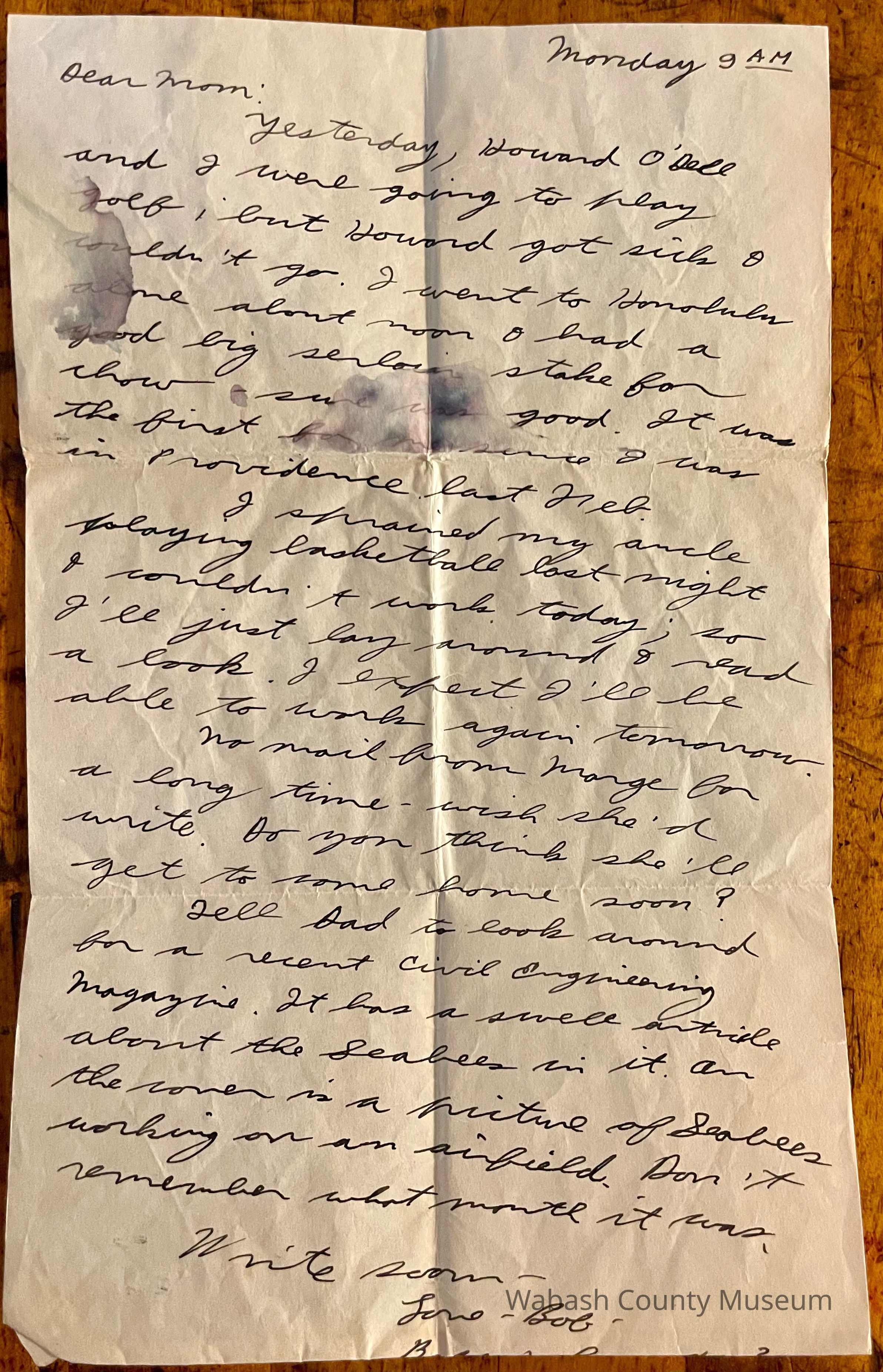 Letter - Robert Milner Bear to Mom, Mrs. John L. Bear (Postmarked Sep. 17, 1944)Entry/Object ID
