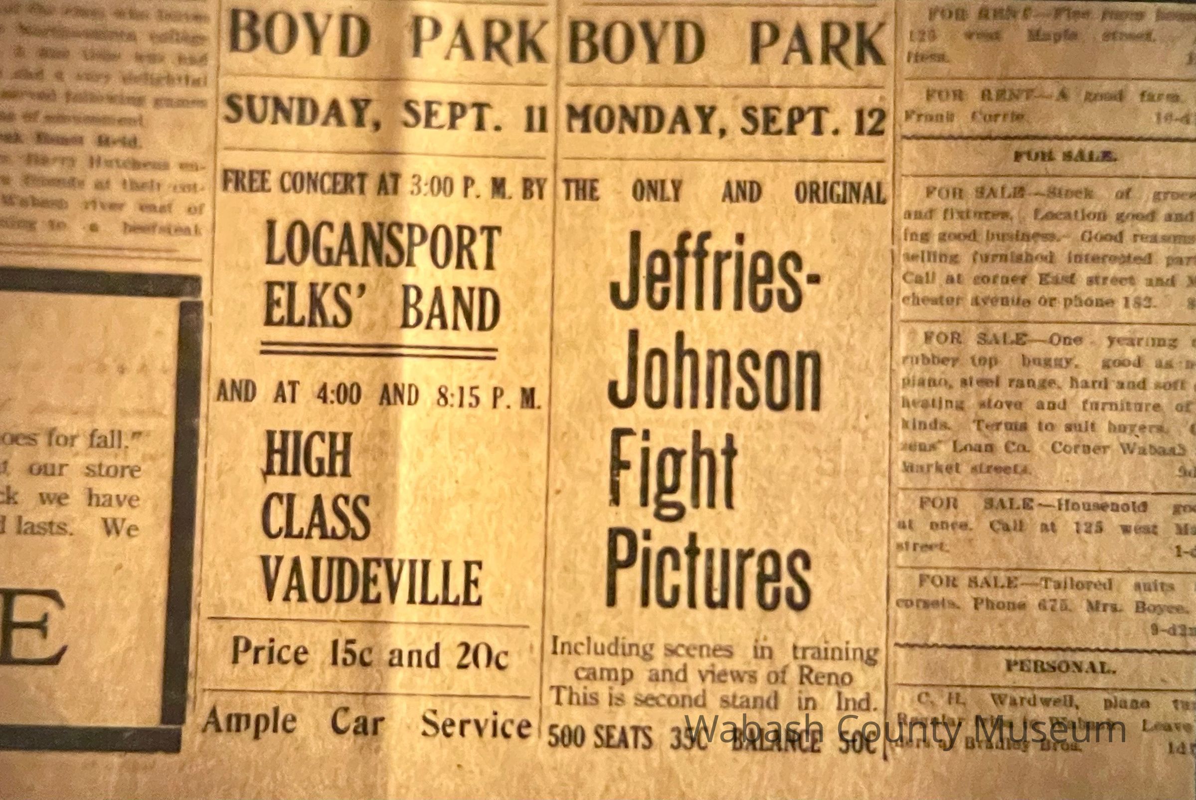 Boyd Park - Ad 1910