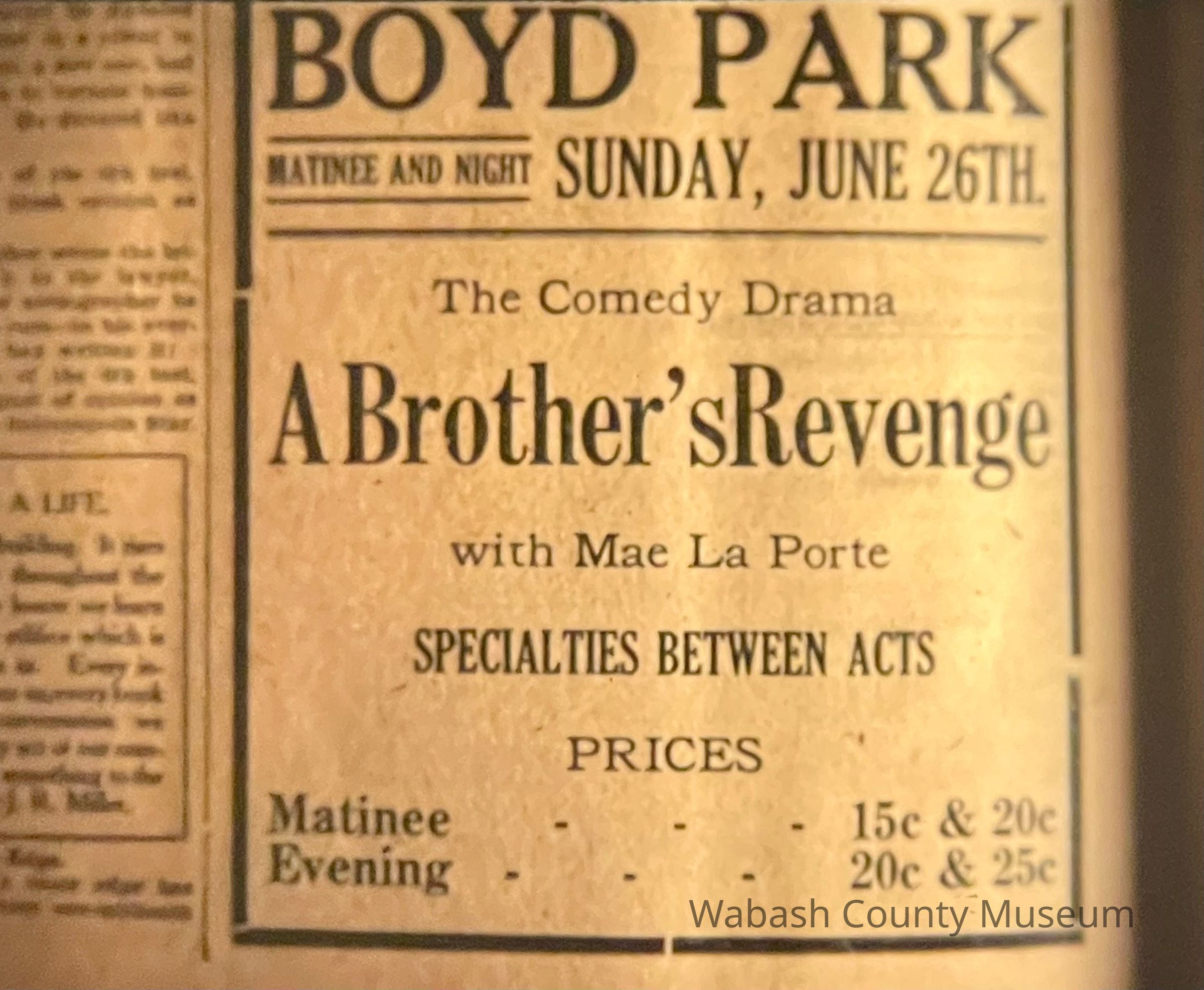 Boyd Park - Ad Sunday June 26 1910