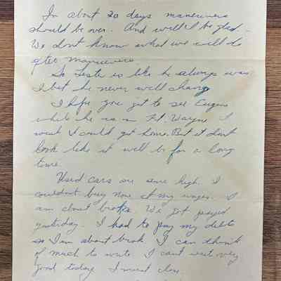 The letter is one page, unlined stationary with a blue header showing an army eagle and underneath it shows United States Army. Letter is written on both sides of the page.