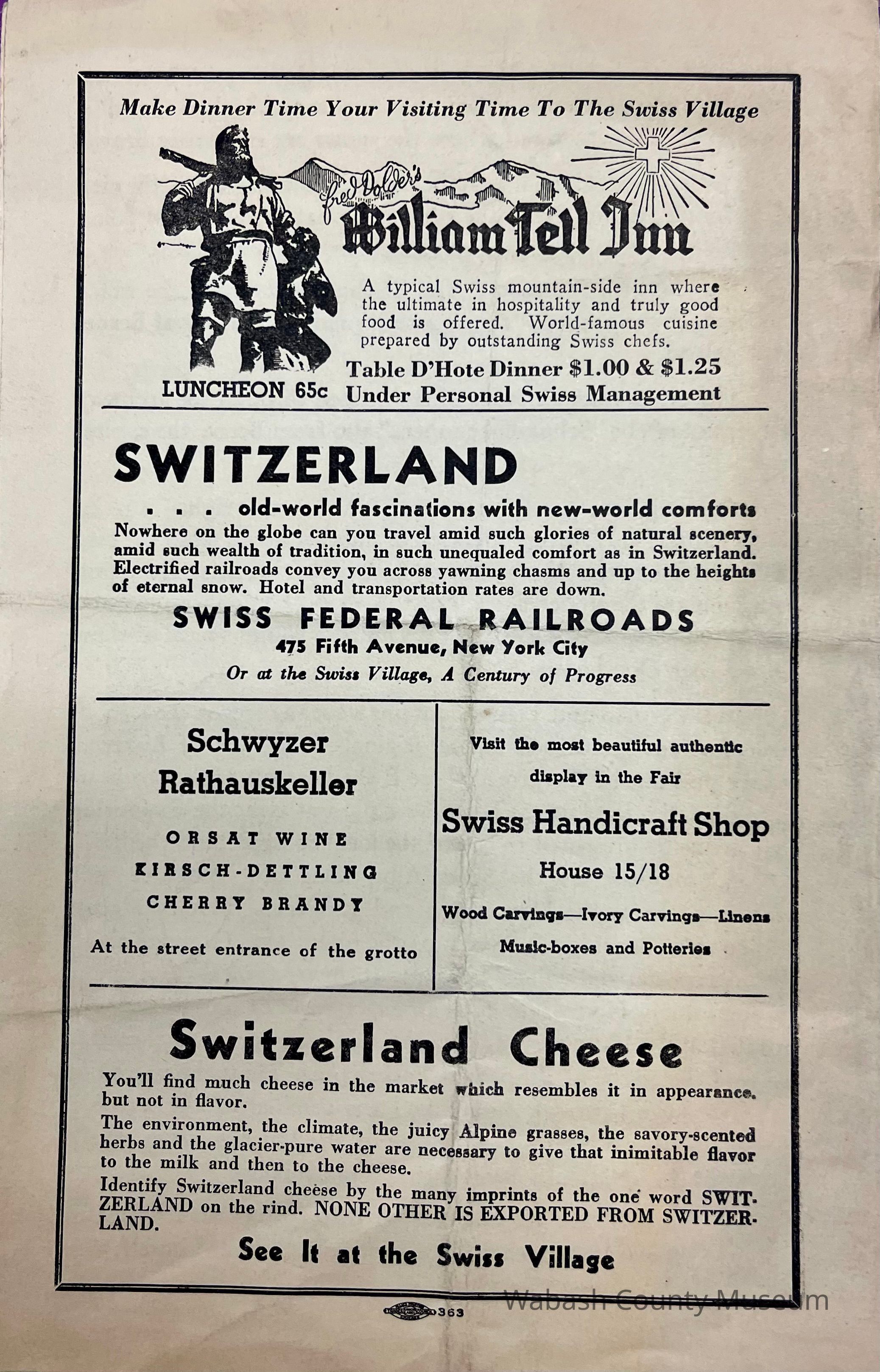 Complimentary Guide to the Swiss VillageEntry/Object ID