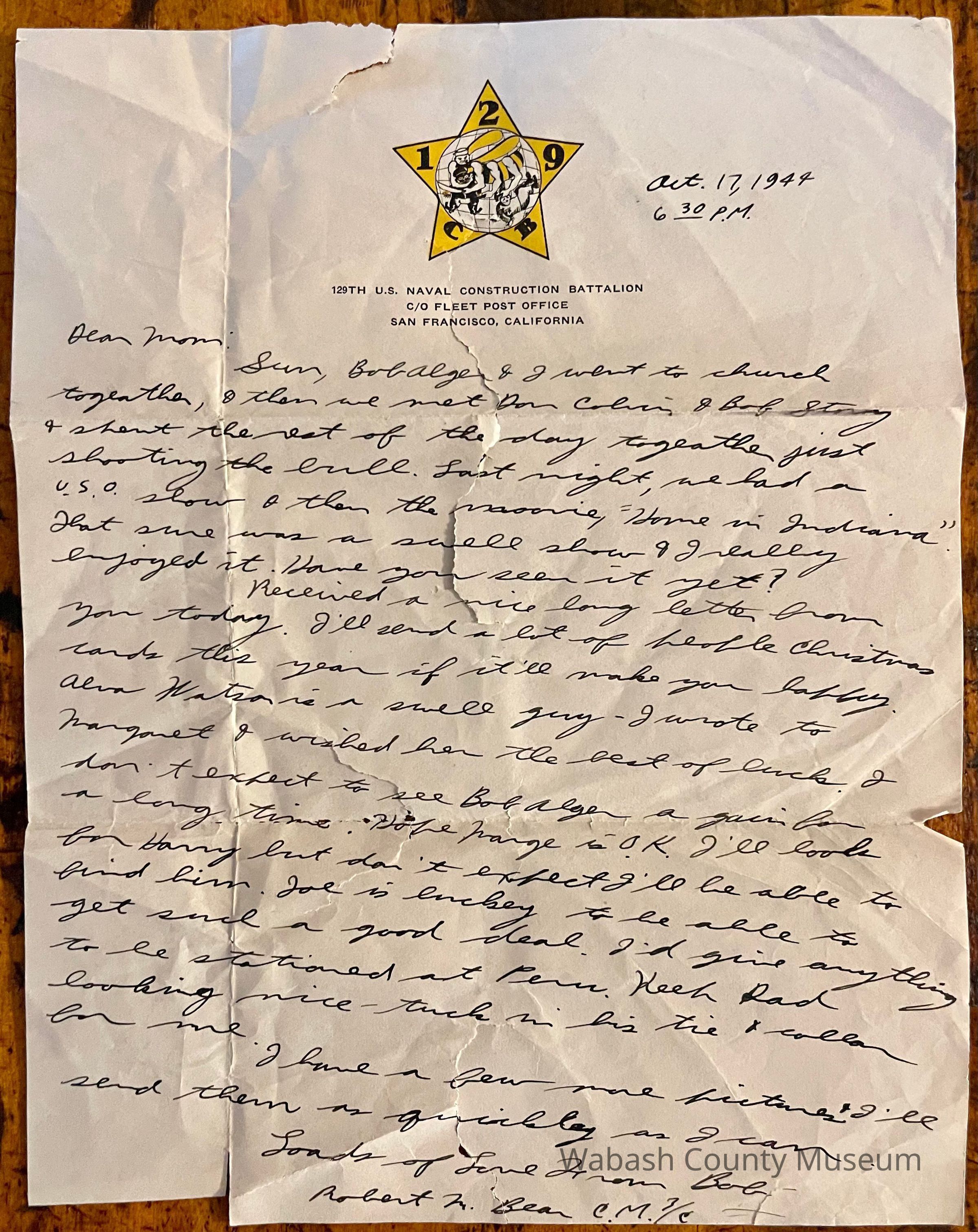Letter - Robert Milner Bear to Mom, Mrs. John L. Bear (Oct. 17, 1944)