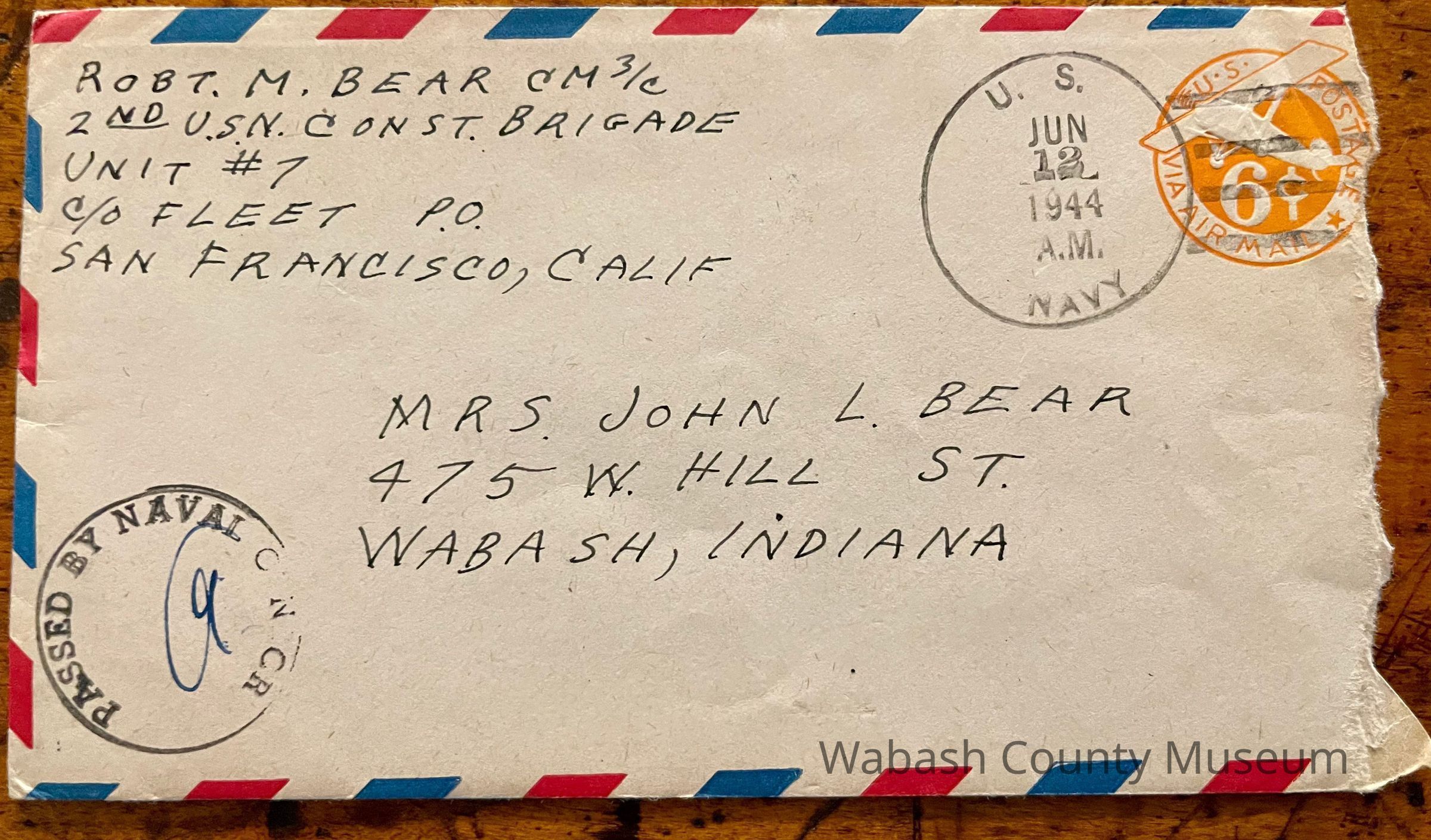 Postmark on envelope reads: US Navy, Jun 12, 1944