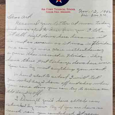 Postmarked Nov. 14, 1942 (12 - PM) at Keesler Field, Miss .