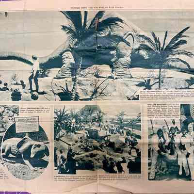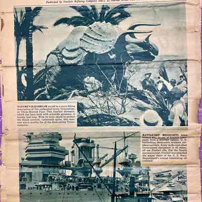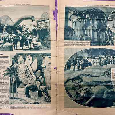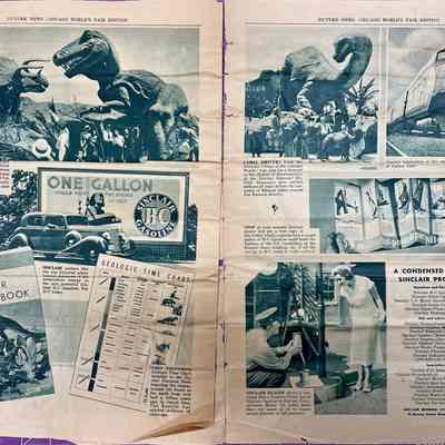 Newspaper published by the Sinclair Refining Company and given away at the 1934 Chicago World's Fair in the Sinclair Dinosaur Exhibit. It's purpose was to impress on the public the age of the crude oils used in refining Sinclair Opaline and Sinclair Pennsylvania Motor Oils.