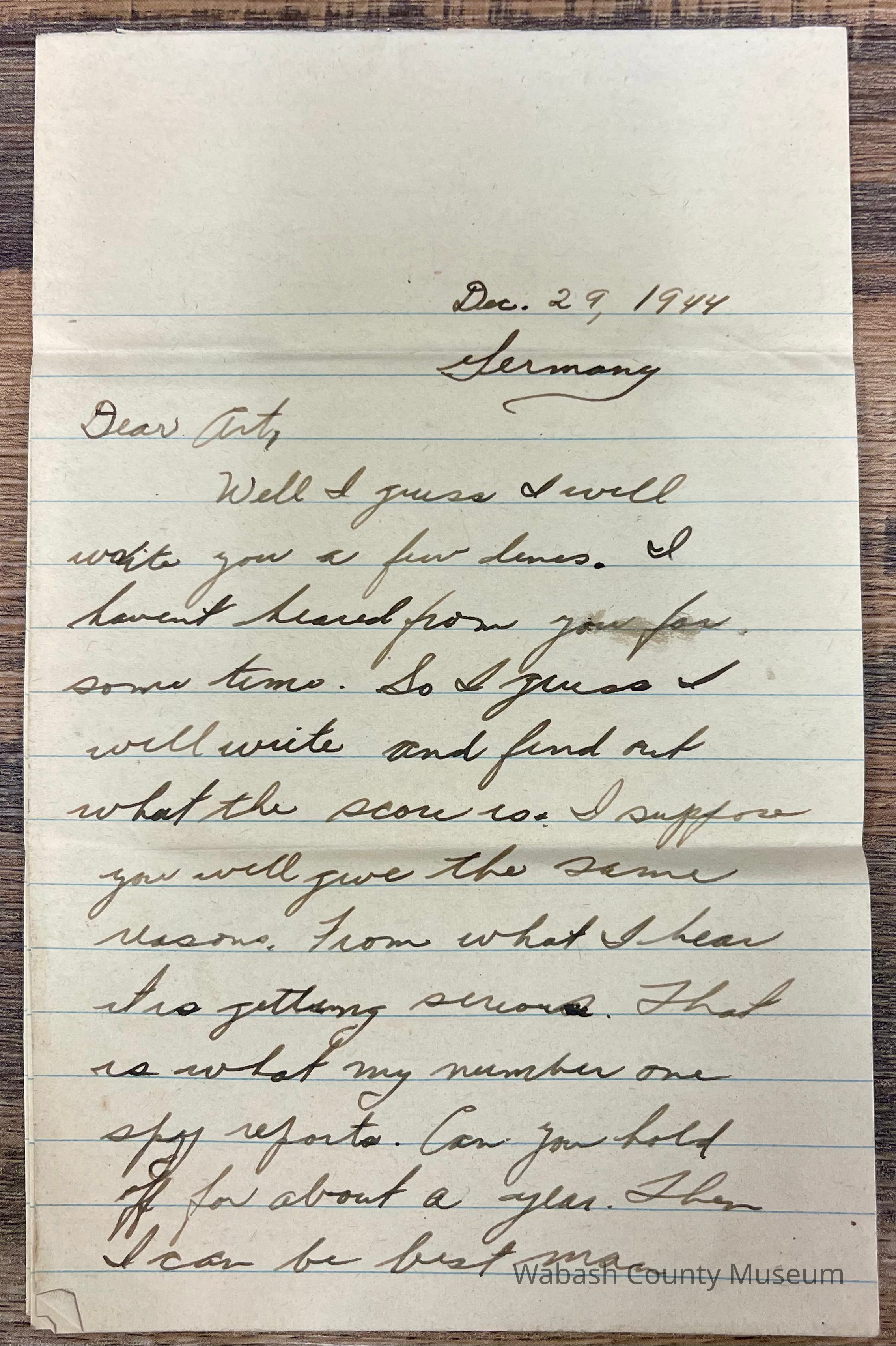Letter - Pfc. John C, Schmalzried (35362335) to Arthur Haupert (Dec. 29, 1944)Entry/Object ID