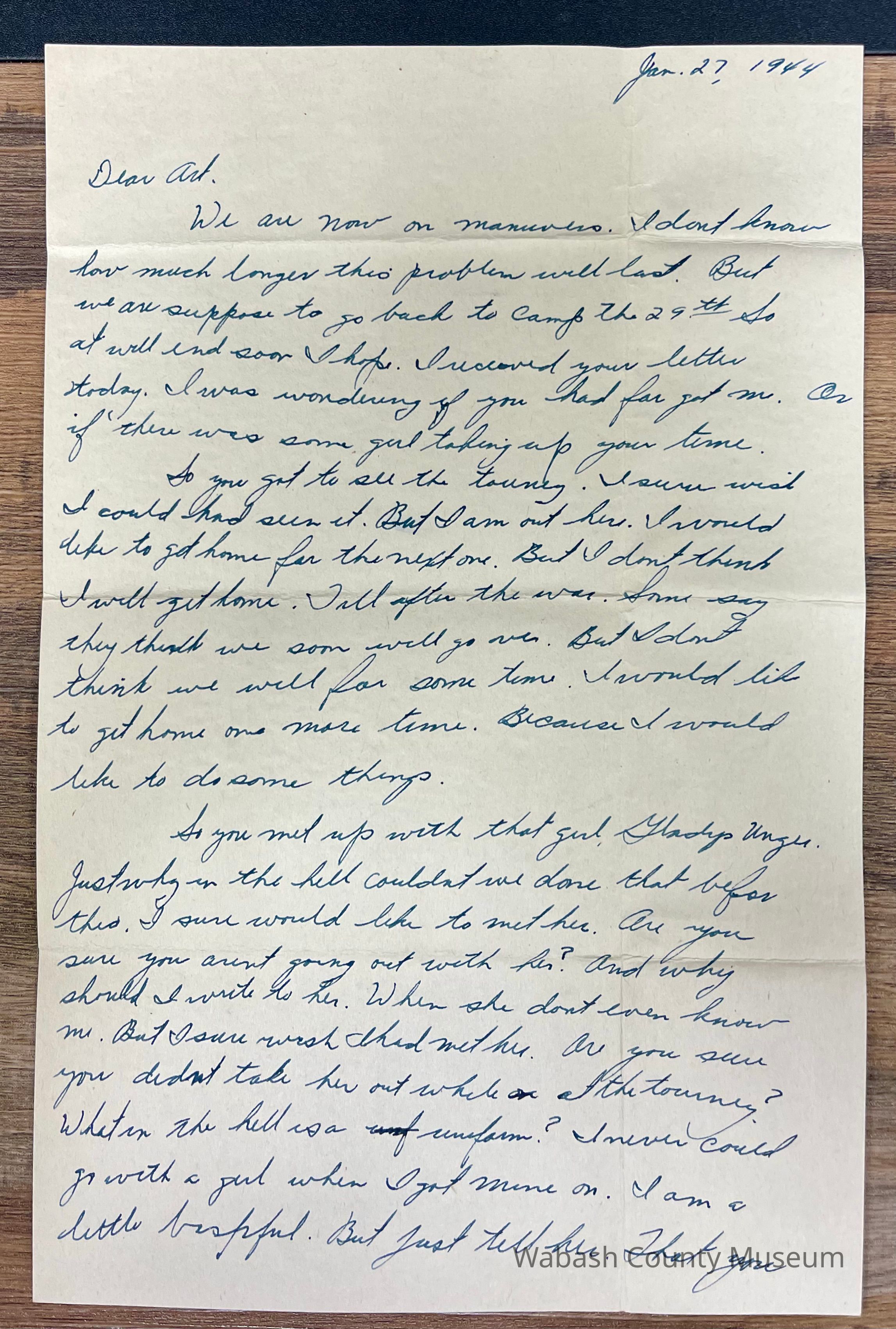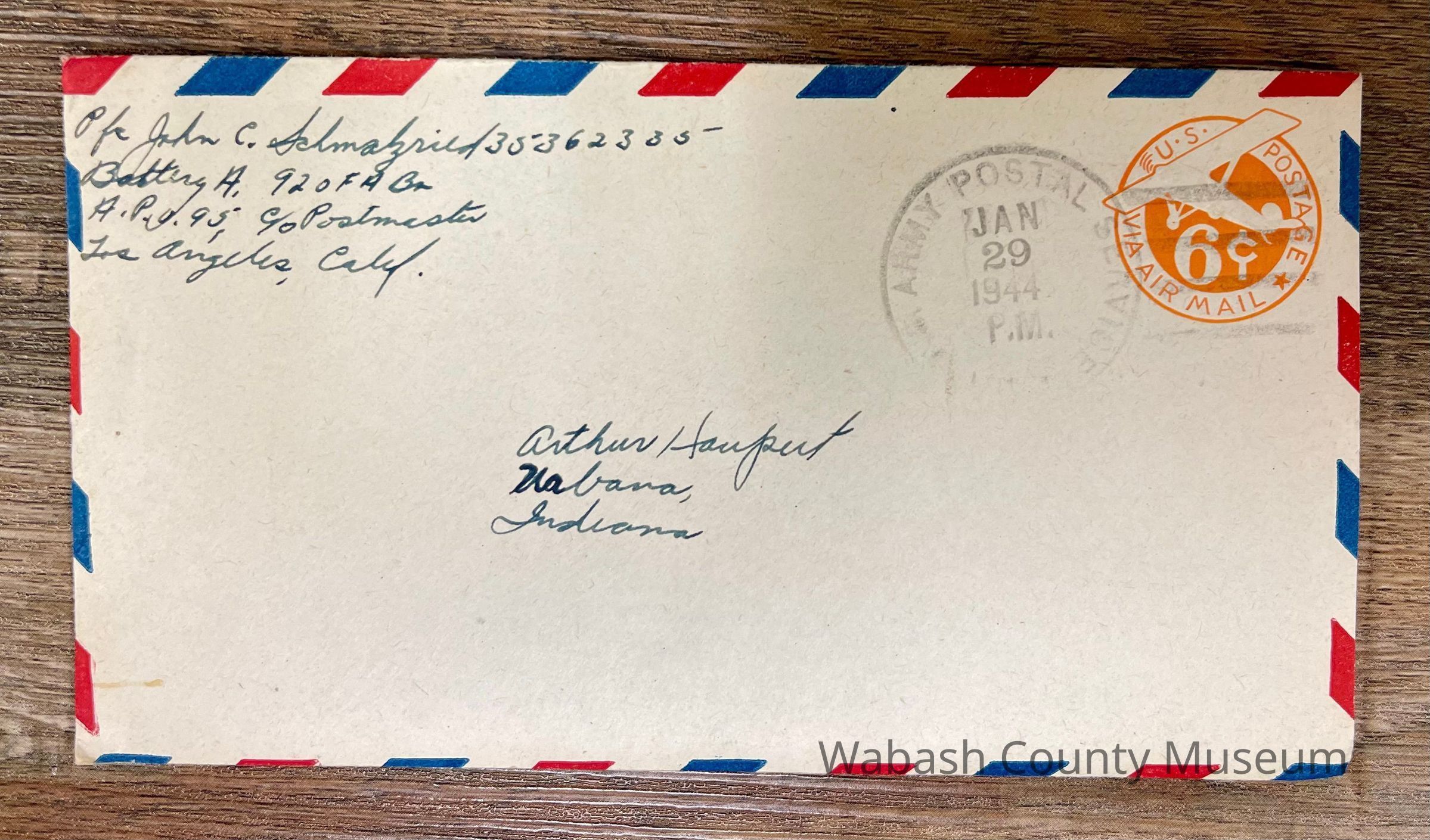 Letter - Pfc. John C, Schmalzried (35362335) to Arthur Haupert (Jan. 29, 1944)