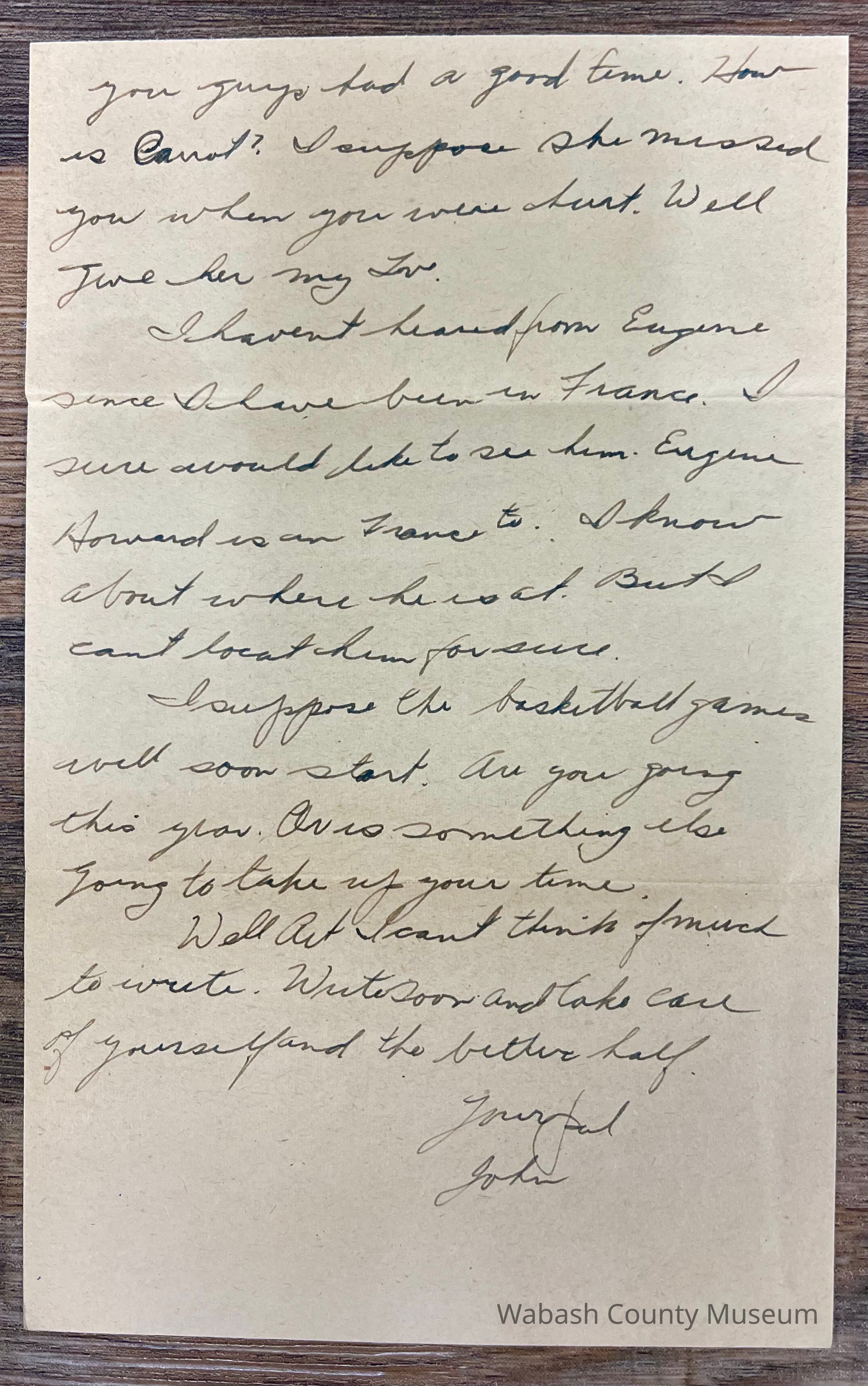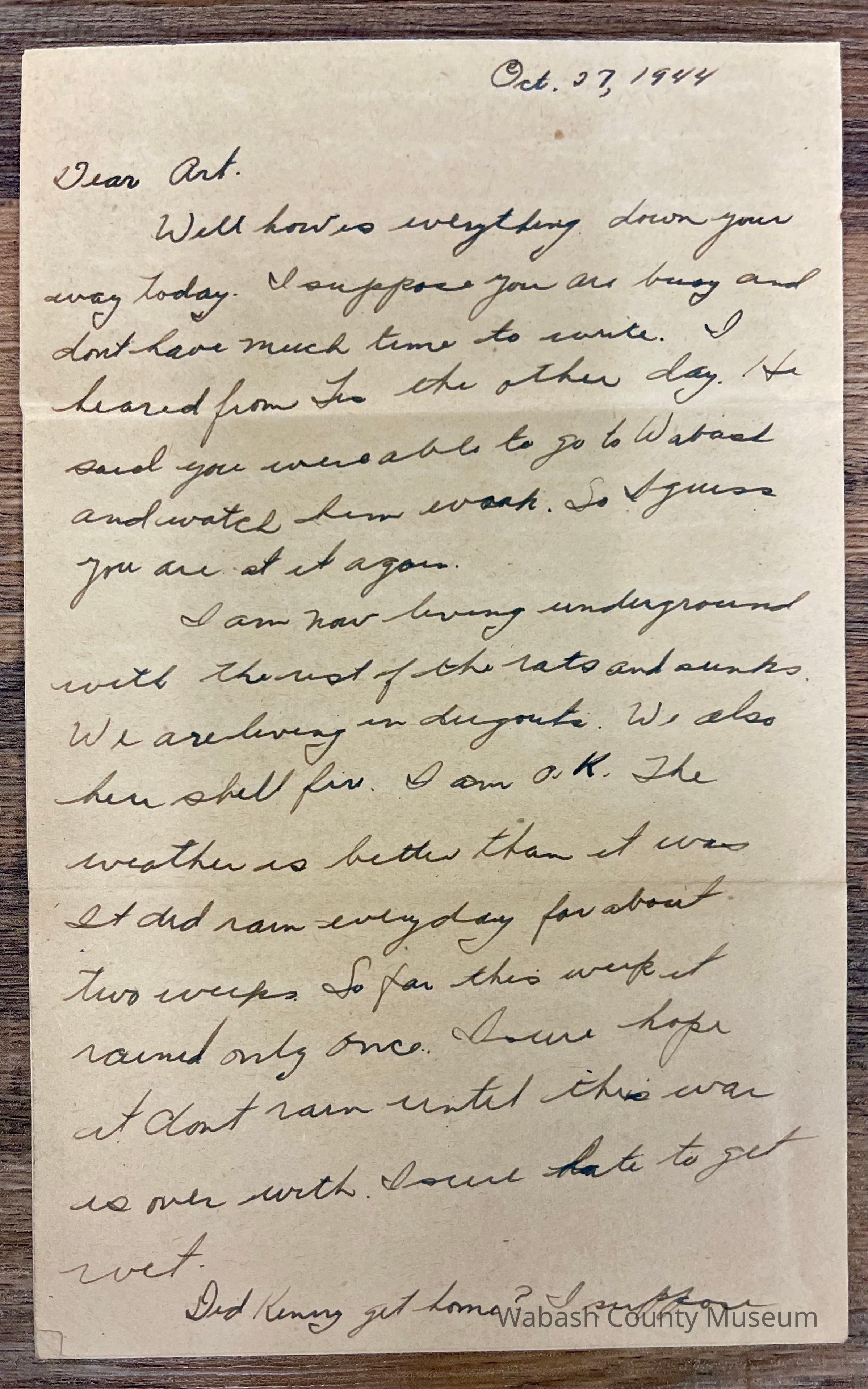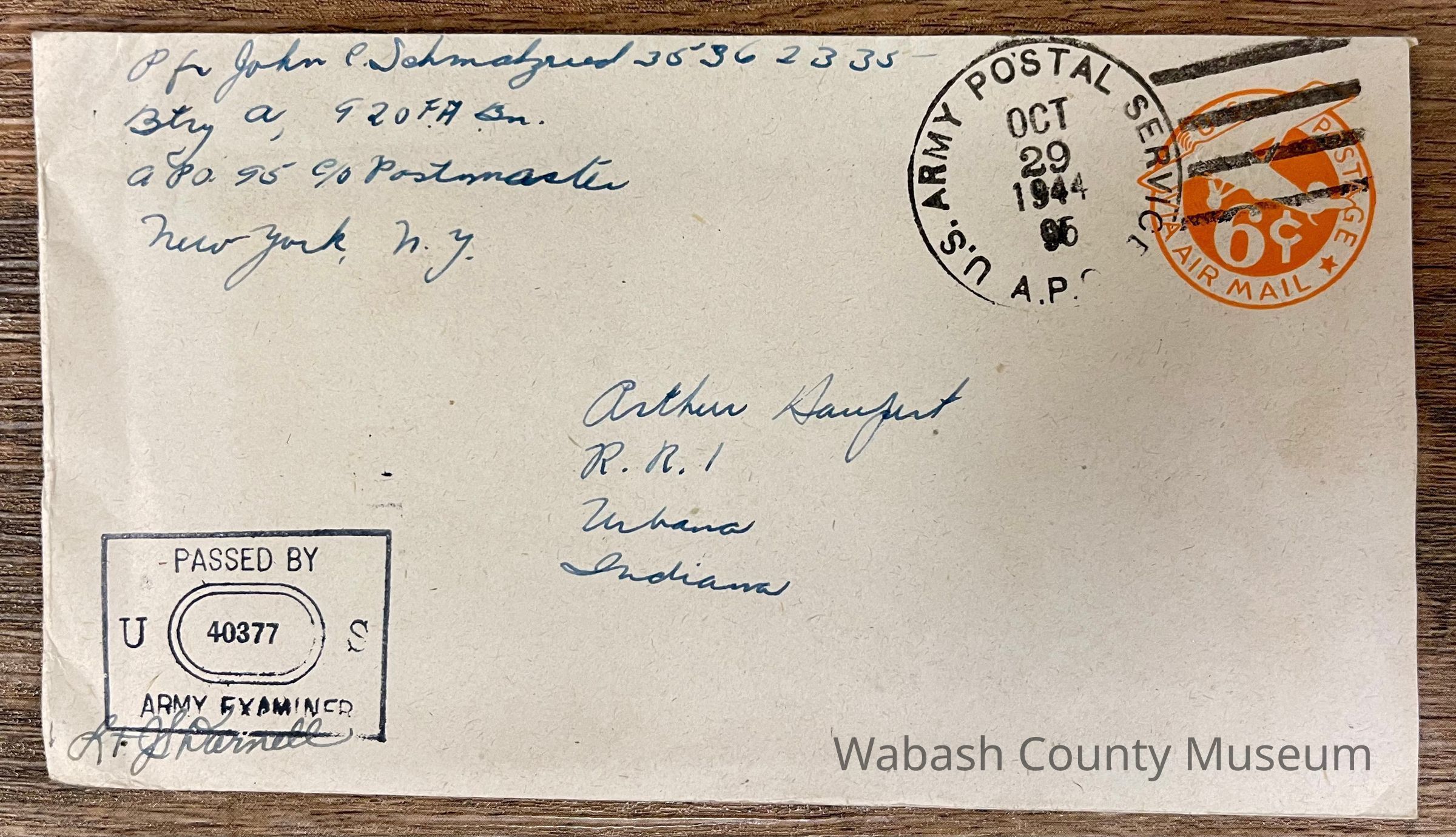 Letter - Pfc. John C, Schmalzried (35362335) to Arthur Haupert (Oct. 29, 1944)Entry/Object ID