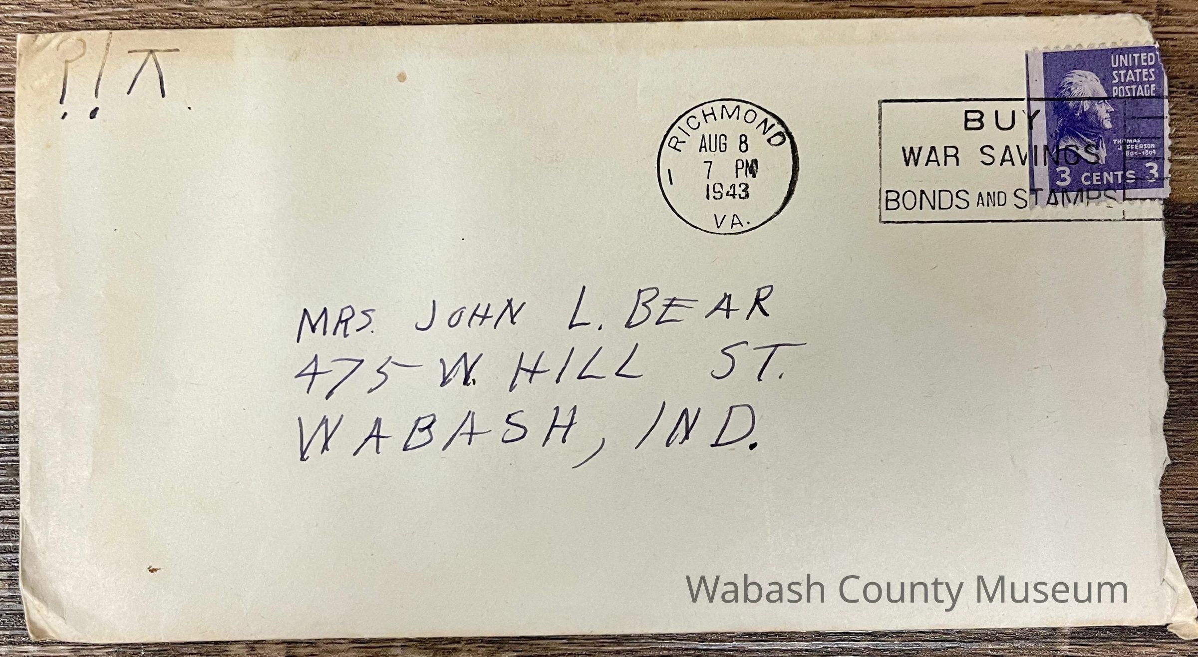 Letter - Robert Milner Bear to Mom, Mrs. John L. Bear (Aug 8, 1943 - Sunday 4:00AM)Entry/Object ID