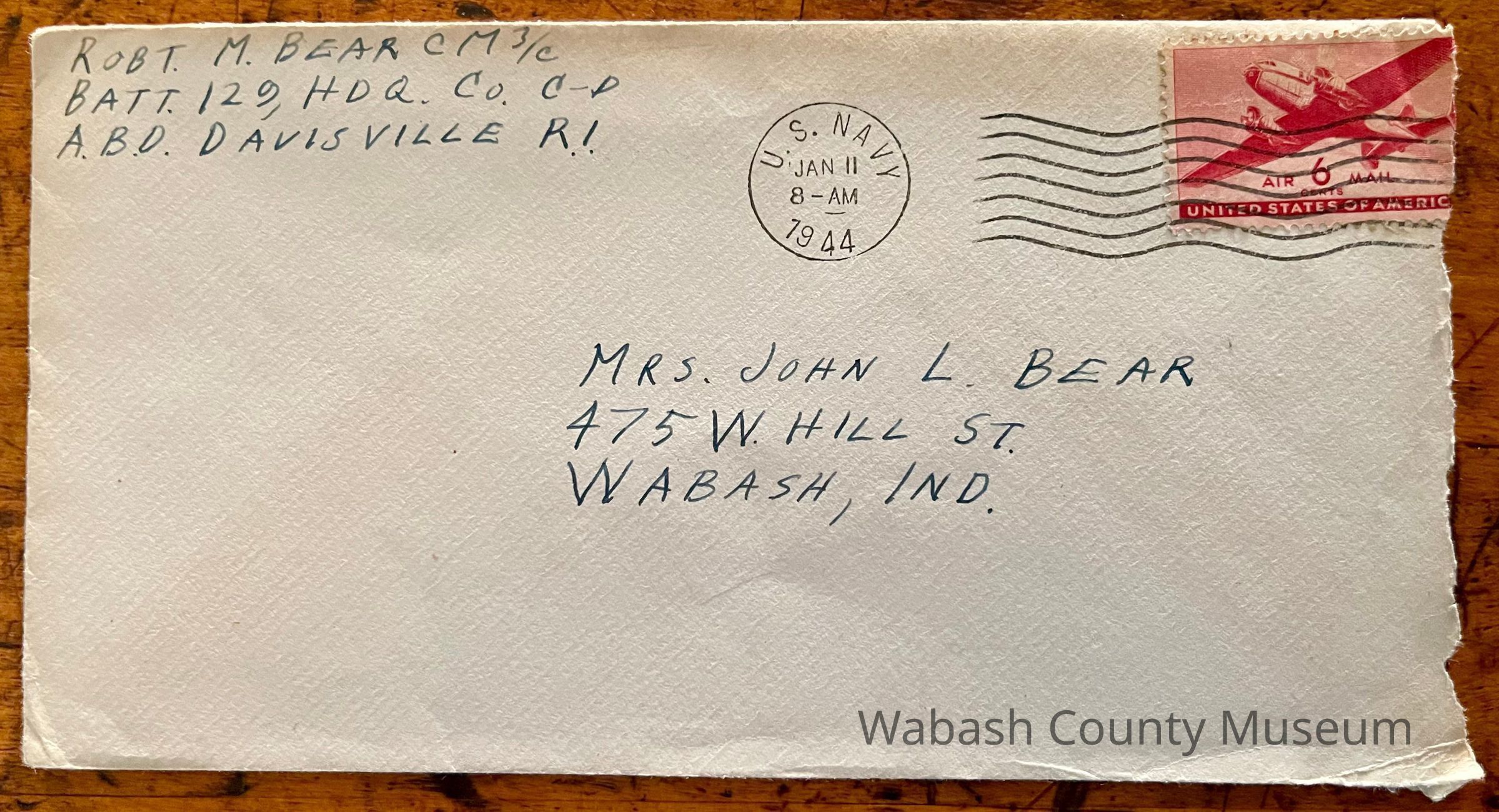 Postmark reads: US Navy Jan. 11, 1944 8-AM