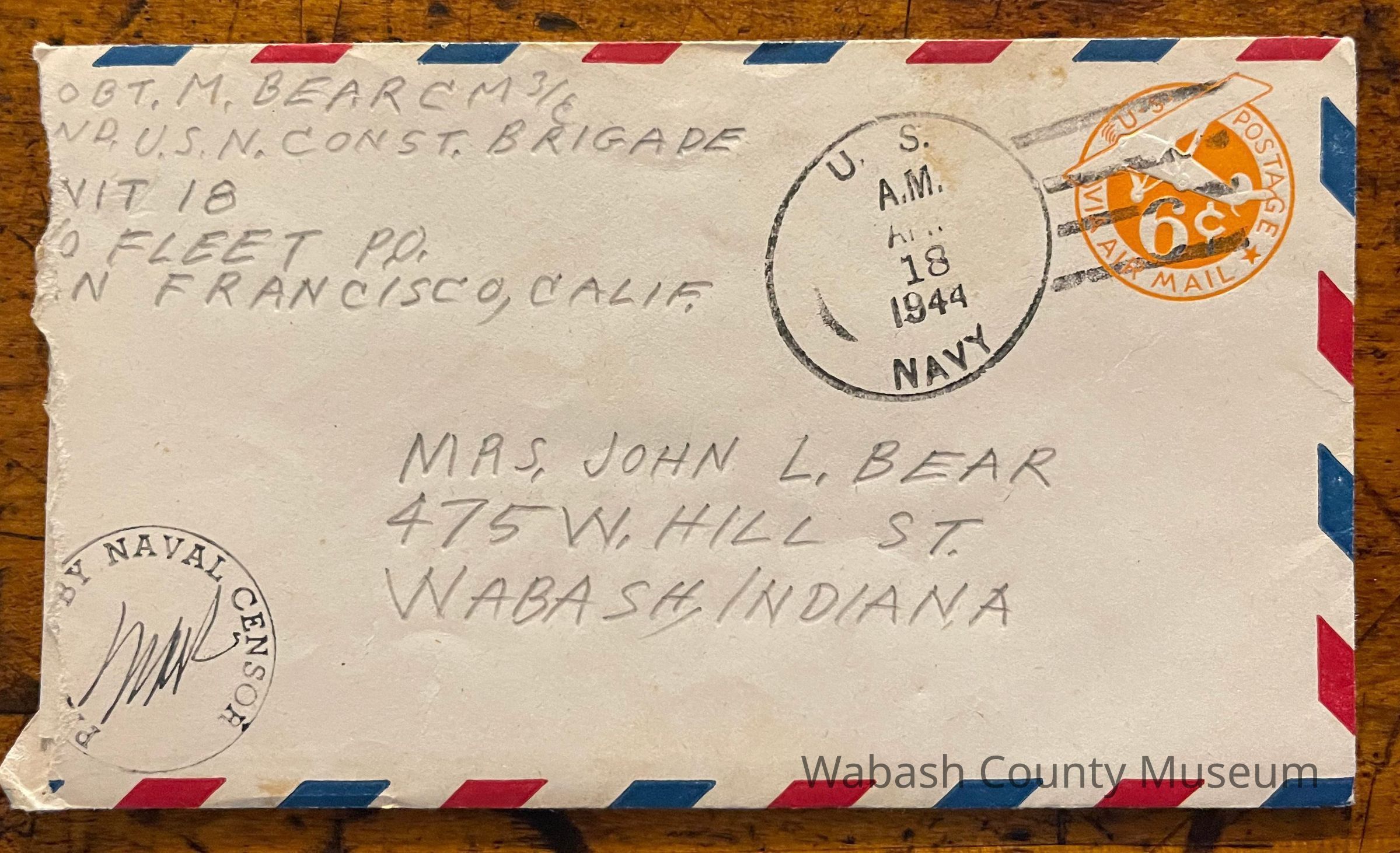 Postmark on envelope reads: US Navy, Apr. 18, 1944
