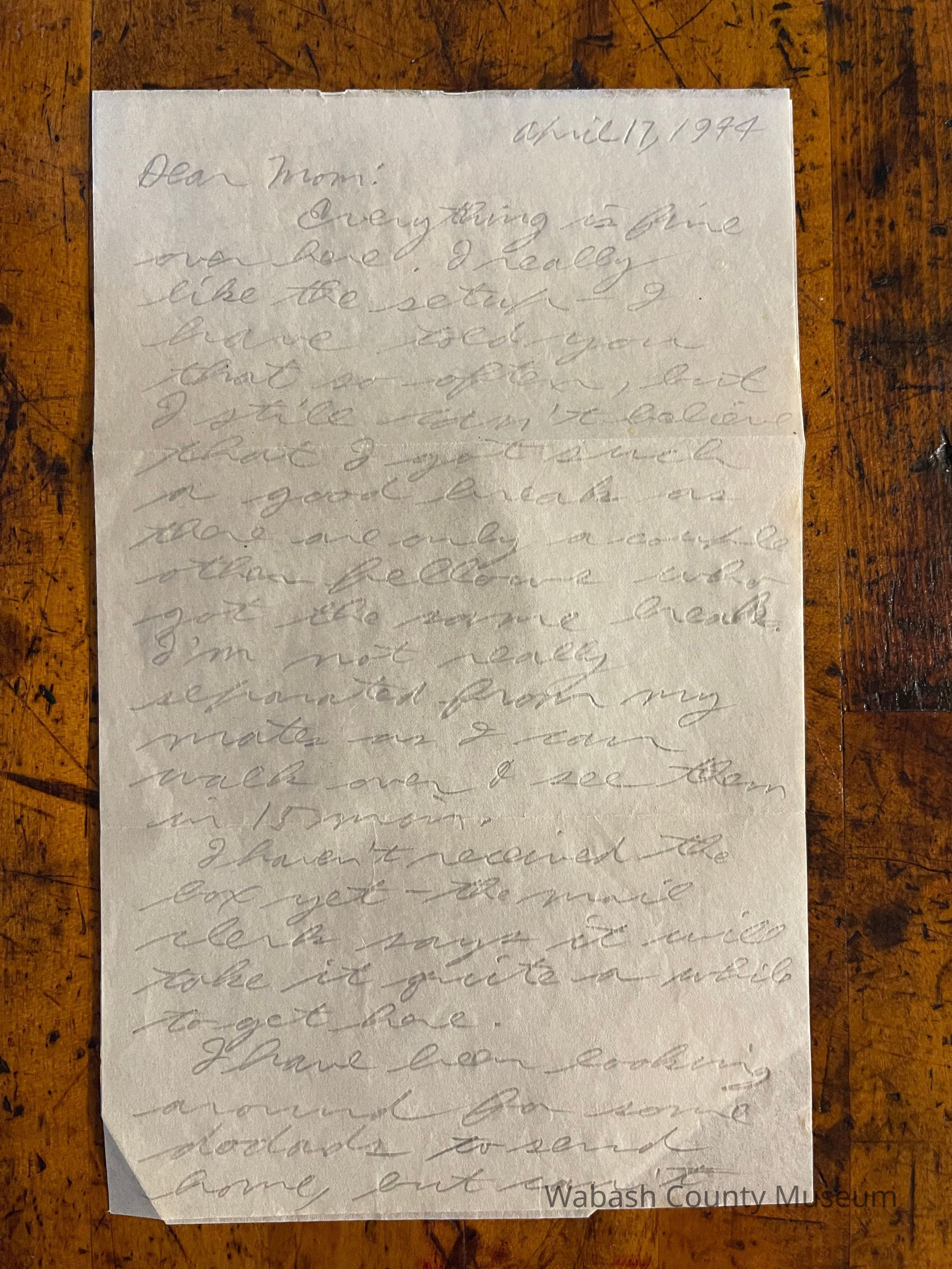 Letter - Robert Milner Bear to Mom, Mrs. John L. Bear (Postmarked Apr. 18, 1944)Entry/Object ID