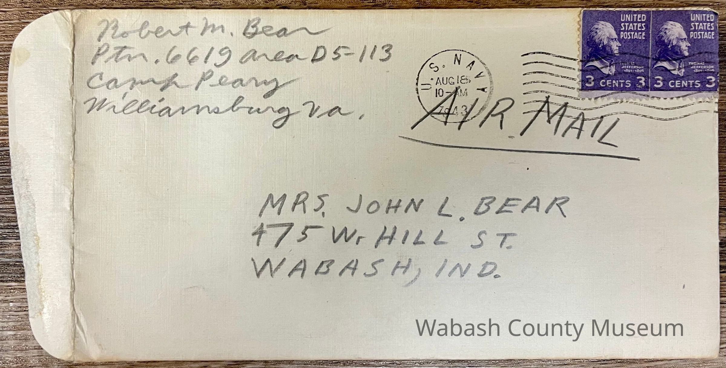 Postmark on envelope reads: US Navy, Aug. 18, 1943 | 10:00AM