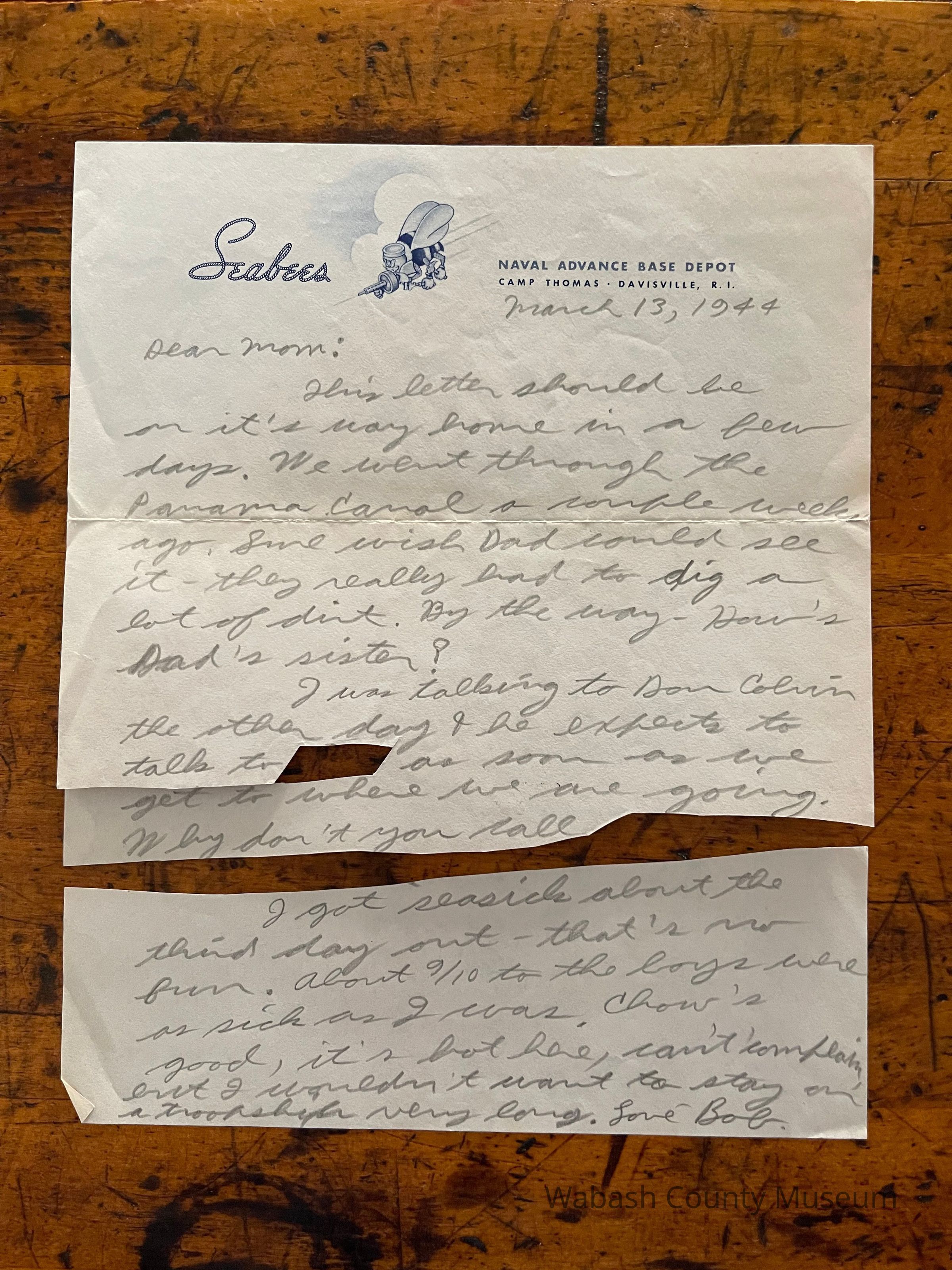 Letter - Robert Milner Bear to Mom, Mrs. John L. Bear (Postmarked Mar. 14, 1944)Entry/Object ID