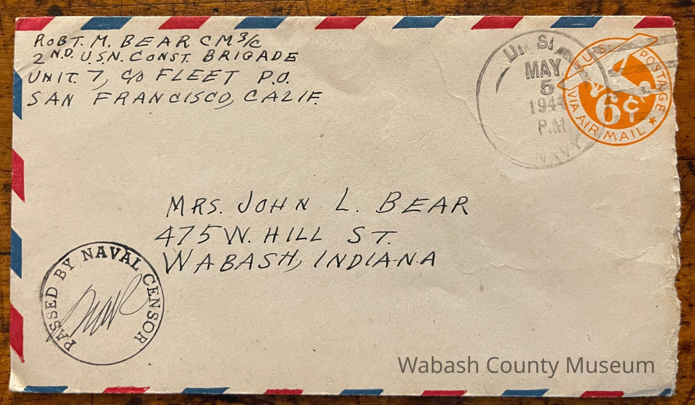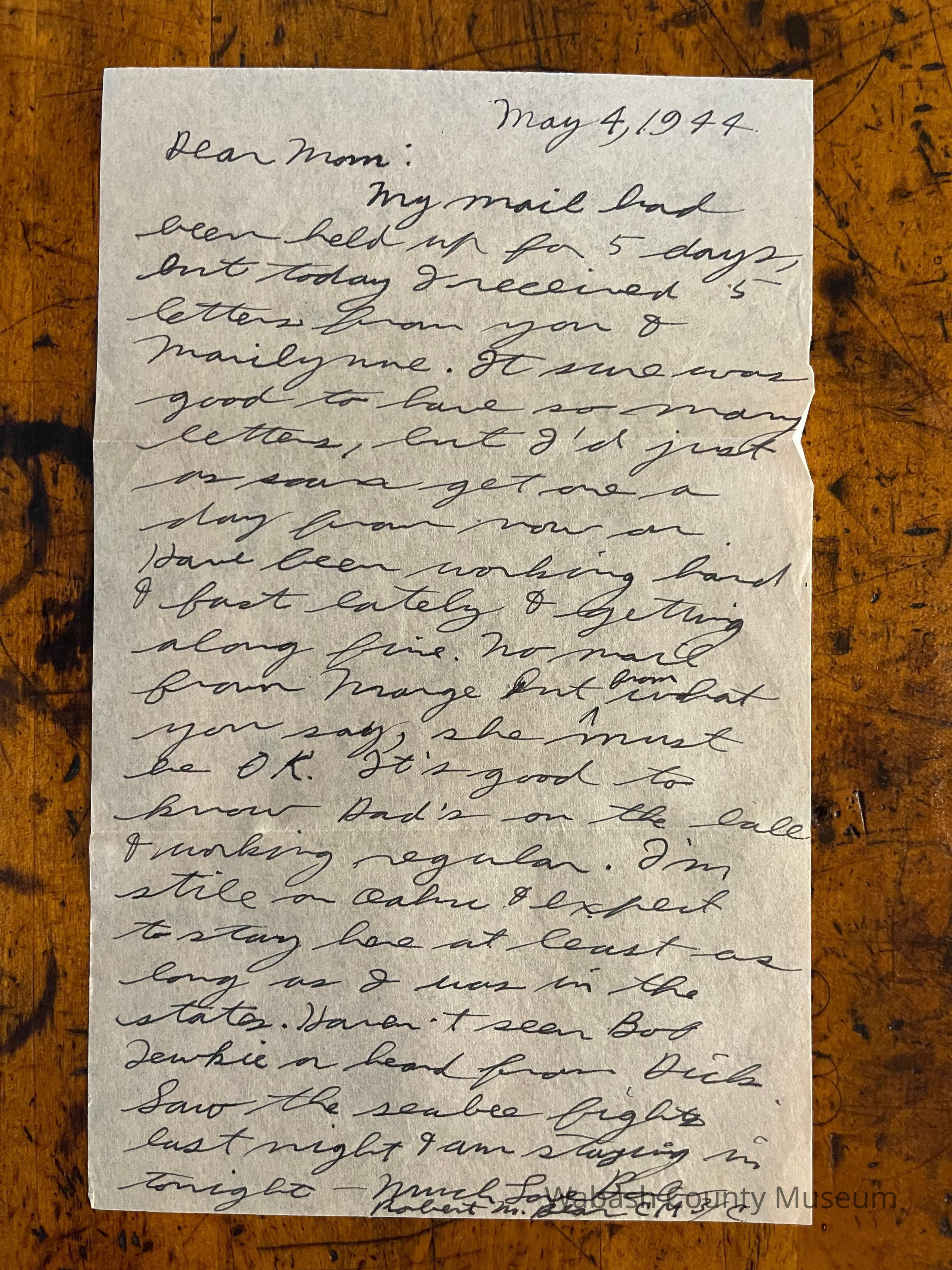 Letter - Robert Milner Bear to Mom, Mrs. John L. Bear (Postmarked May. 5, 1944)Entry/Object ID