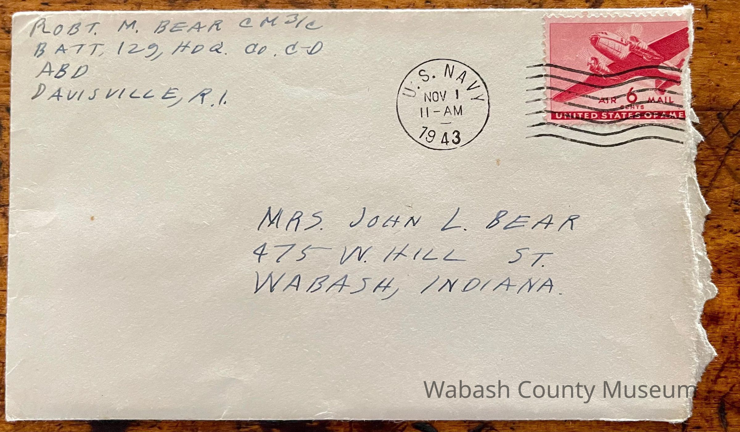 Postmark on envelope reads: US Navy, Nov. 1, 1943 | 11:00AM