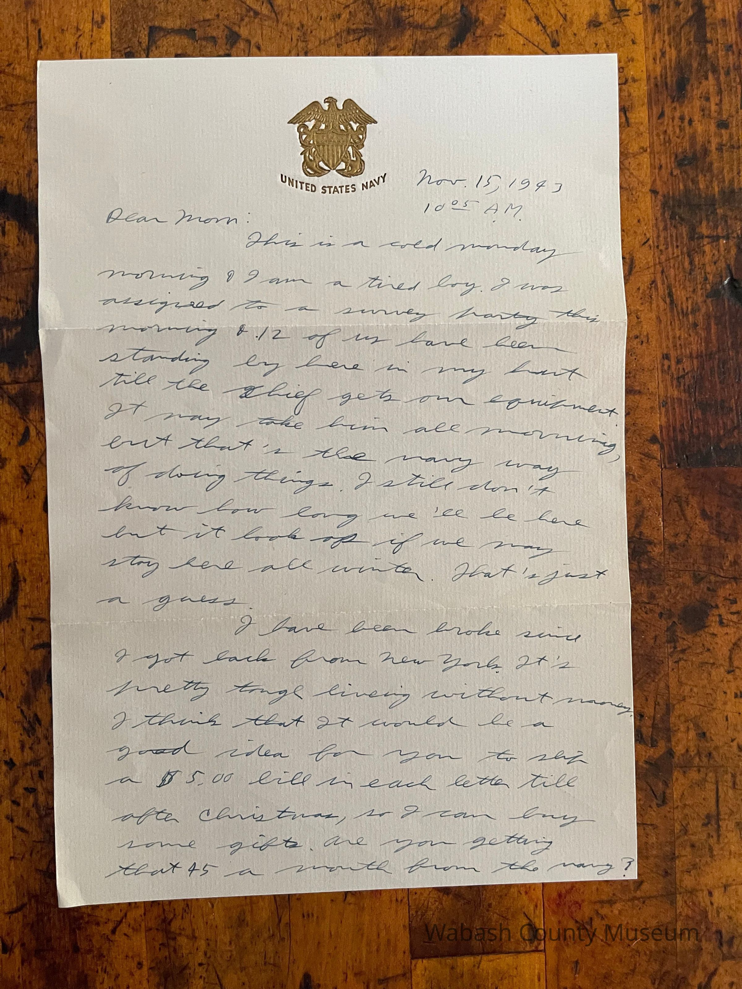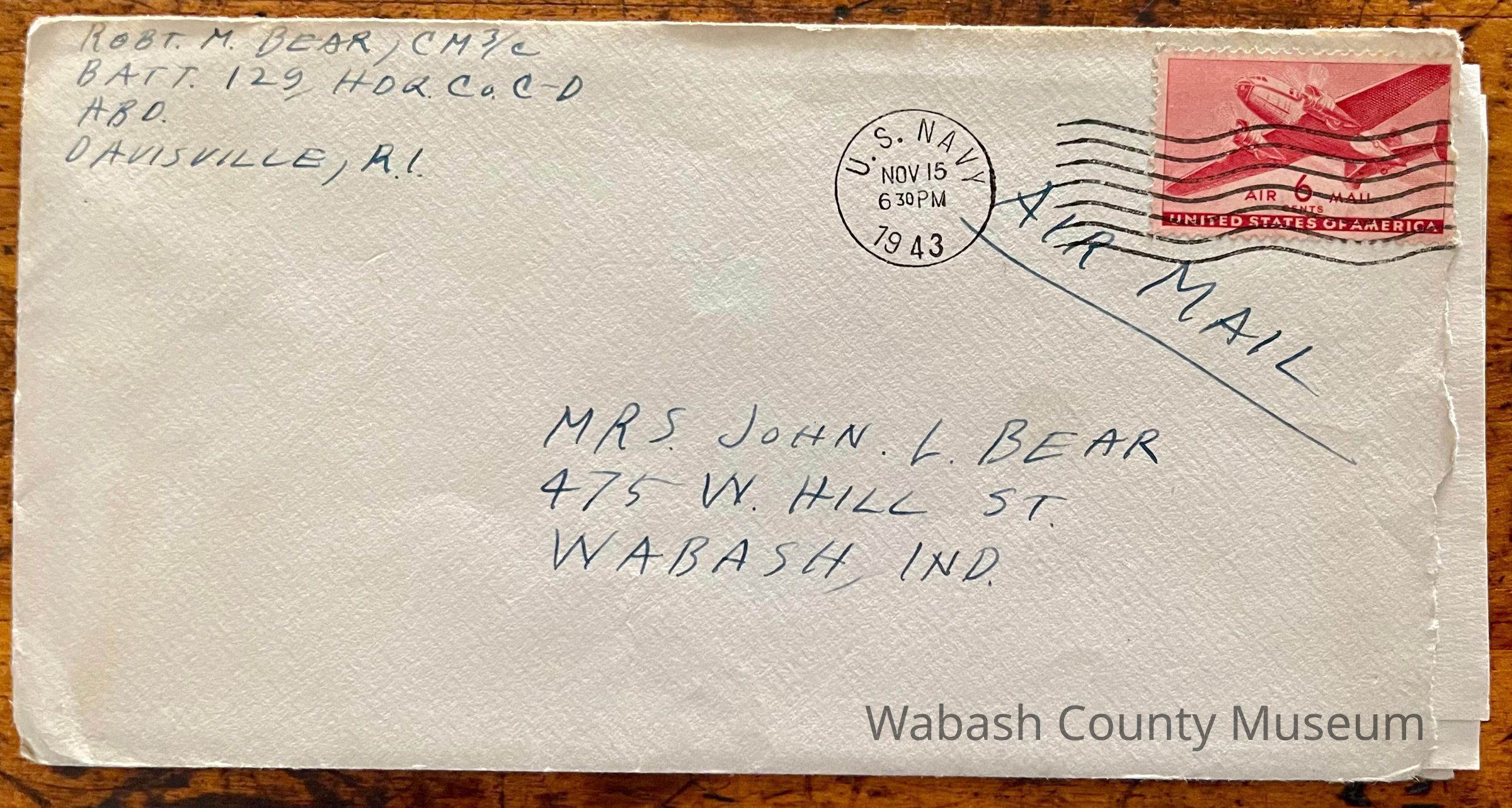 Postmark on envelope reads: US Navy, Nov. 15, 1943 | 6:30PM