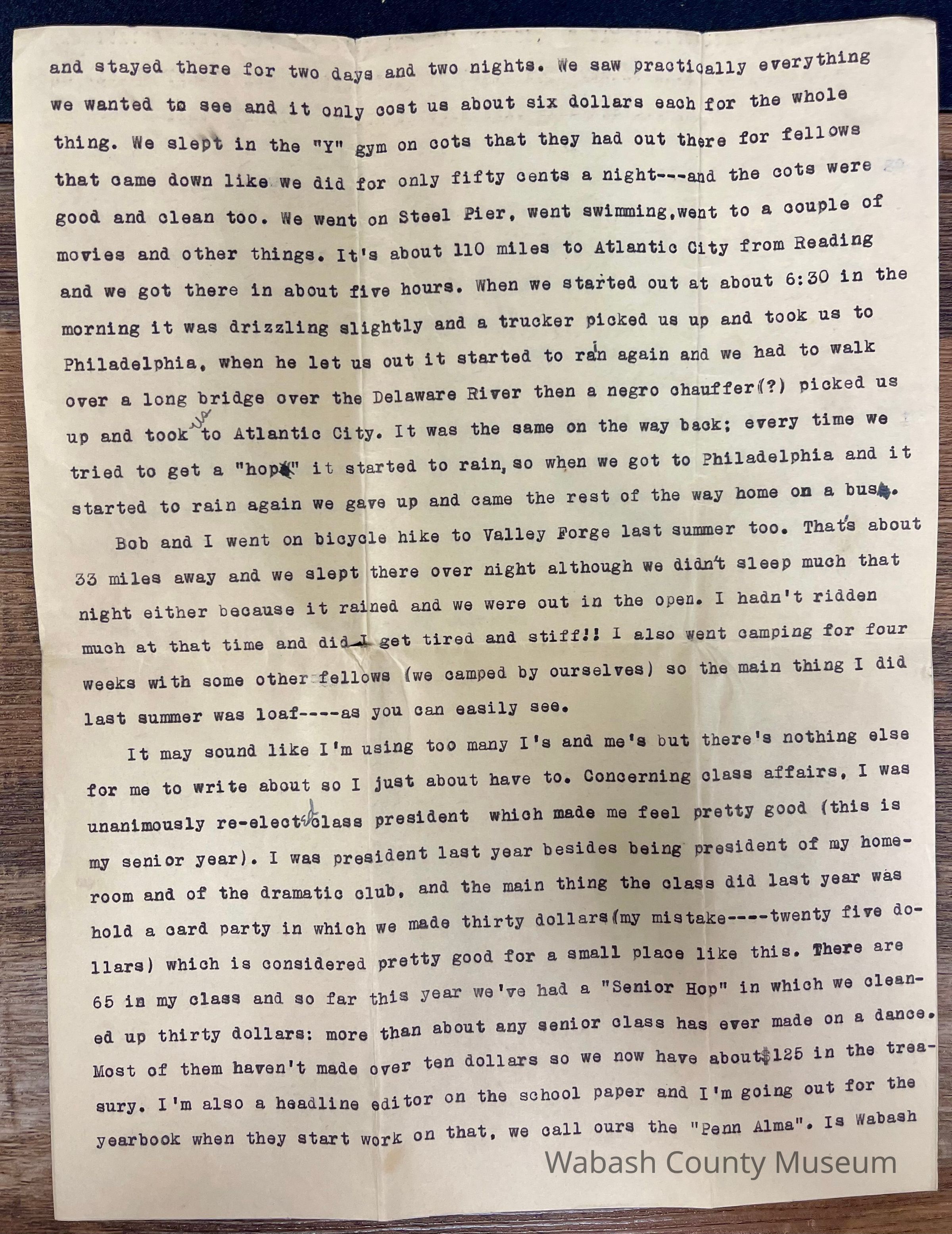 Paper is typed and three pages in length. Typed on one side only.