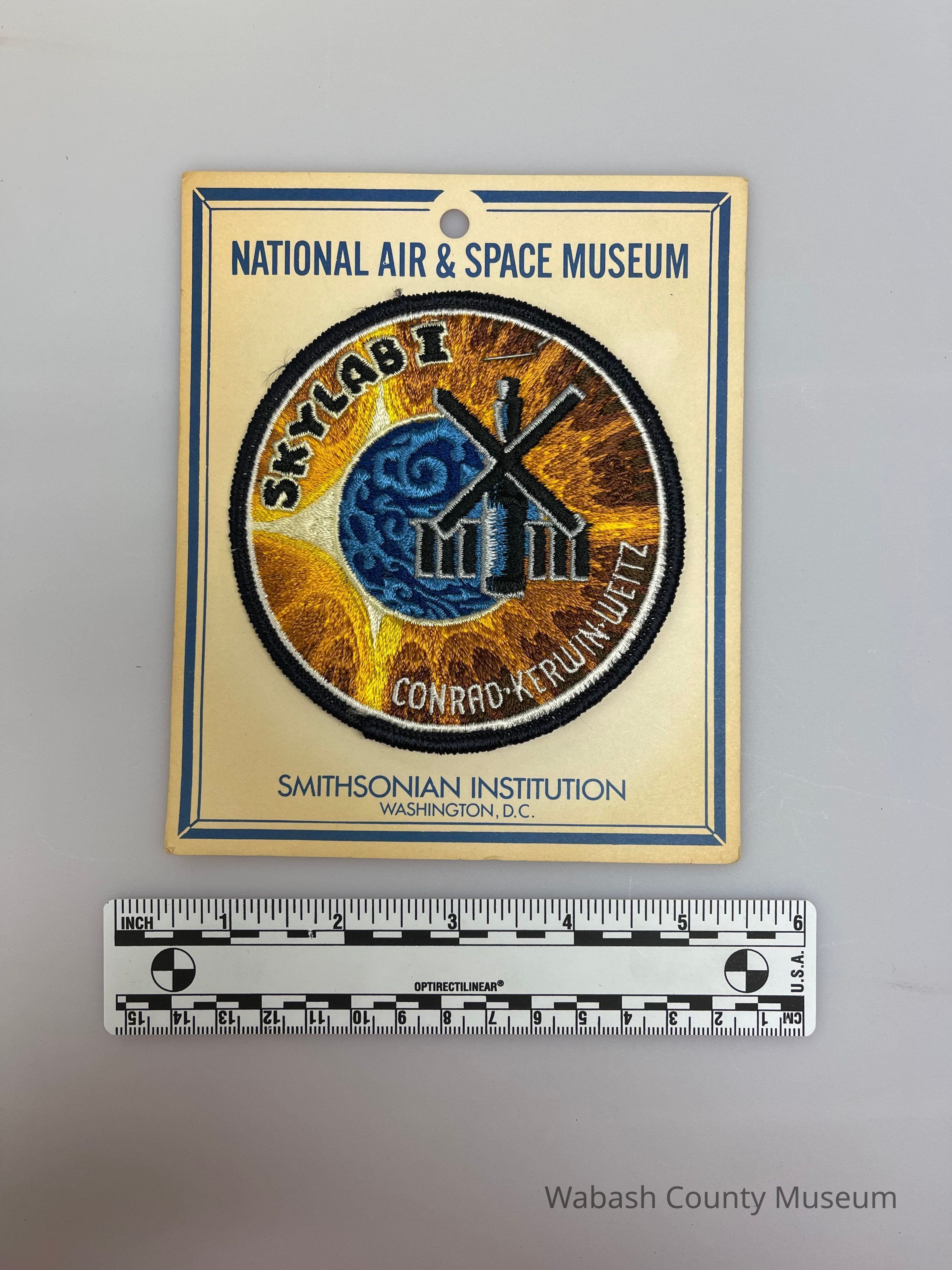 NASA Mission Patch - Skylab I (Conrad, Kerwin, Weitz). This Skylab 1 Patch measures 3 inches in diameter and was produced by NASA's official patch manufacturer, AB Emblem. Skylab was the first US orbital space station. Skylab 1 was one of three missions to the space station, and was launched on top of a Saturn IB rocket on May 14, 1973. The mission was crewed by Commander Pete Conrad, Science Pilot Joe Kerwin and Pilot Paul Weitz. The mission lasted for 28 days, 49 minutes, 49 seconds, and travelled approximately 18,500,000 kilometres.