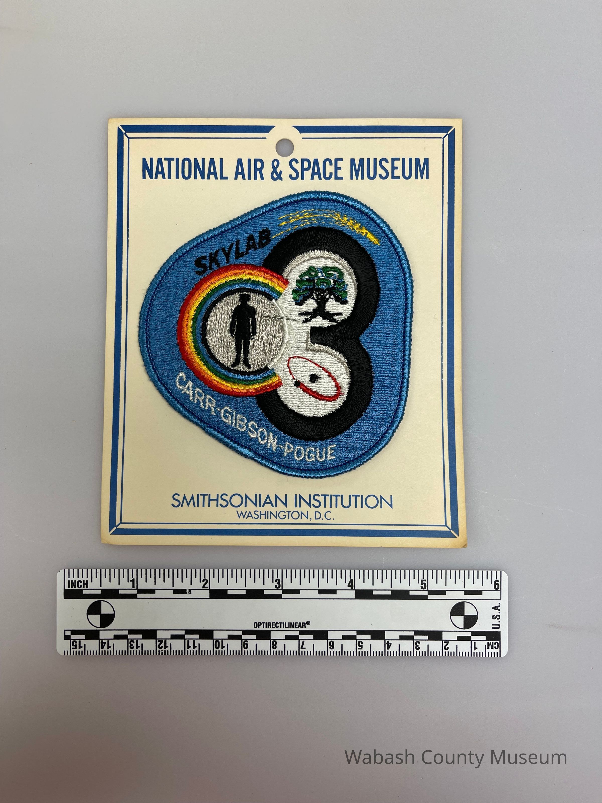 NASA Mission Patch - Skylab III (Carr, Gibson, Pogue). This Skylab 3 Patch measures 3 inches in diameter and was produced by NASA's official patch manufacturer, AB Emblem. Skylab was the first US orbital space station. Skylab 3 was the third of three missions to the space station, and was launched on top of a Saturn IB rocket on November 16, 1973. The mission was crewed by Commander Jerry Carr, Science Pilot Ed Gibson and Pilot Bill Pogue. The mission lasted for 84 days, 1 hour, 15 minutes, 30 seconds, and travelled approximately 55,500,000 kilometres.