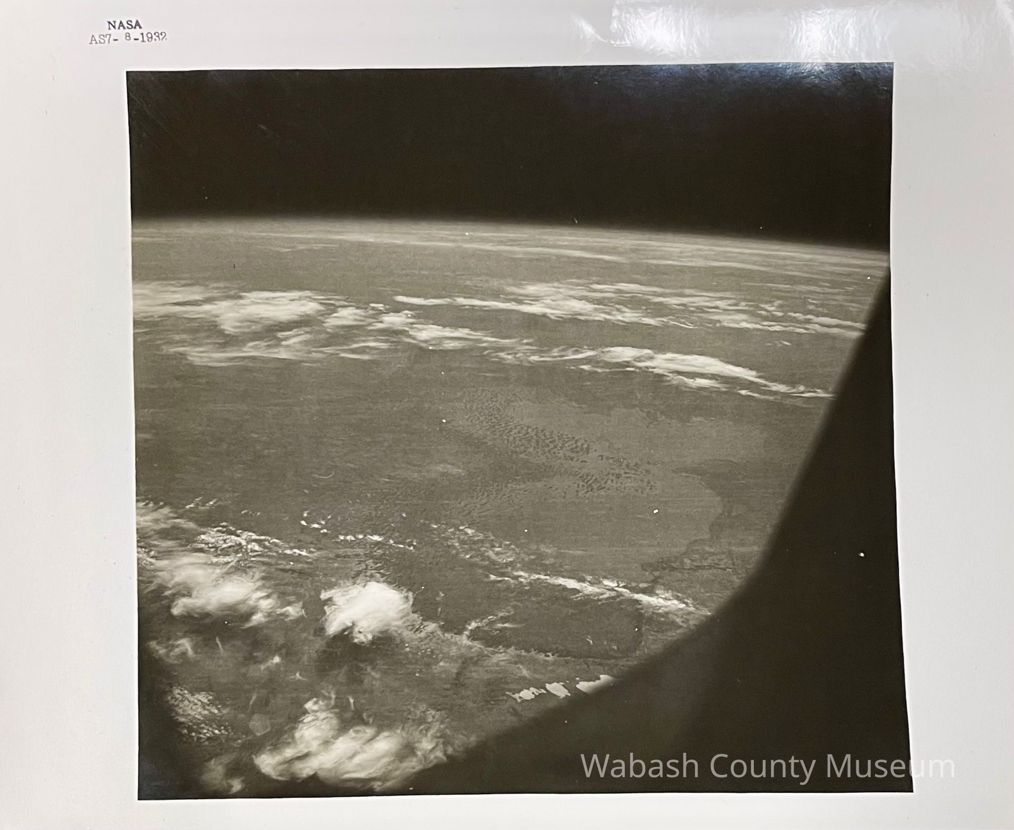 A NASA black-number photograph from the Apollo 7 Mission. B&W photograph, 8 x 10 inches, October, 1968, with Black NASA identification number in margin: AS7-8-1932 "A Kodak Paper" watermarks on back.