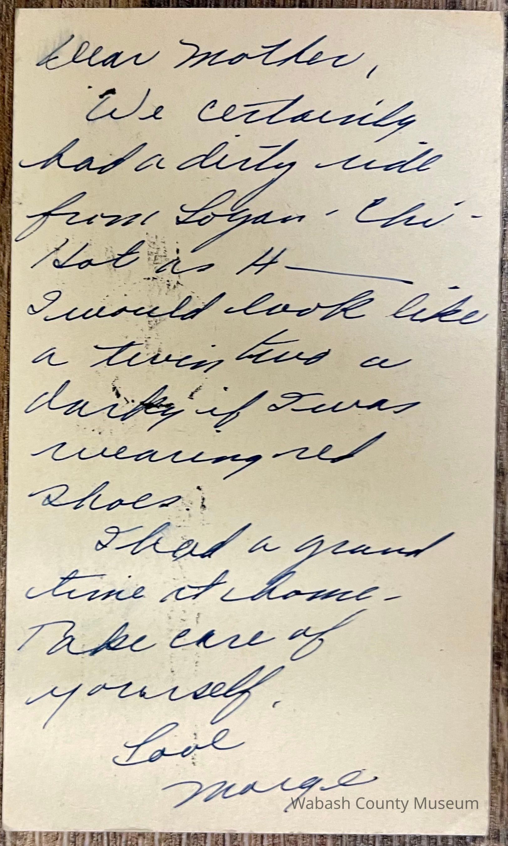 Postcard - Adressed to Mrs. John L. Bear from Marge (Sep. 2, 1943)