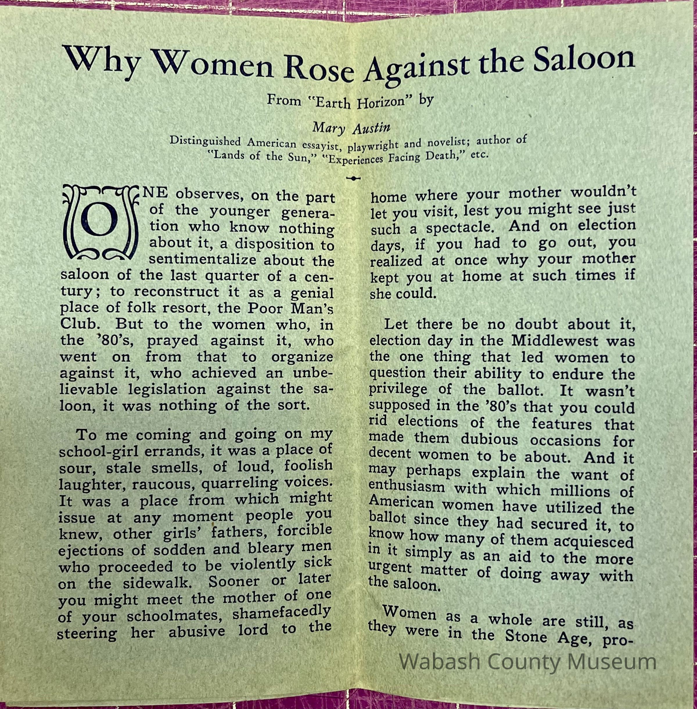 What Next? Why Women Rose Against the Saloon