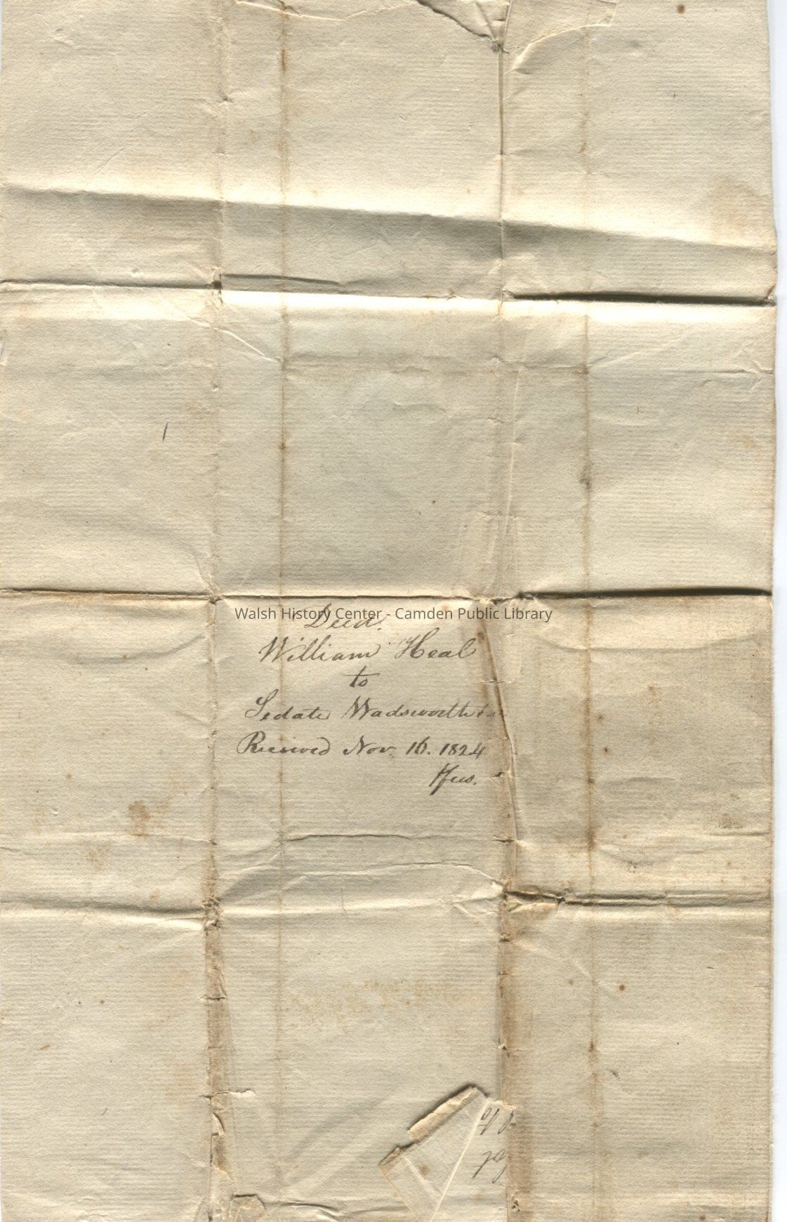 16 April 1823 deed from William Heal to Sedate WadsworthEntry/Object ID