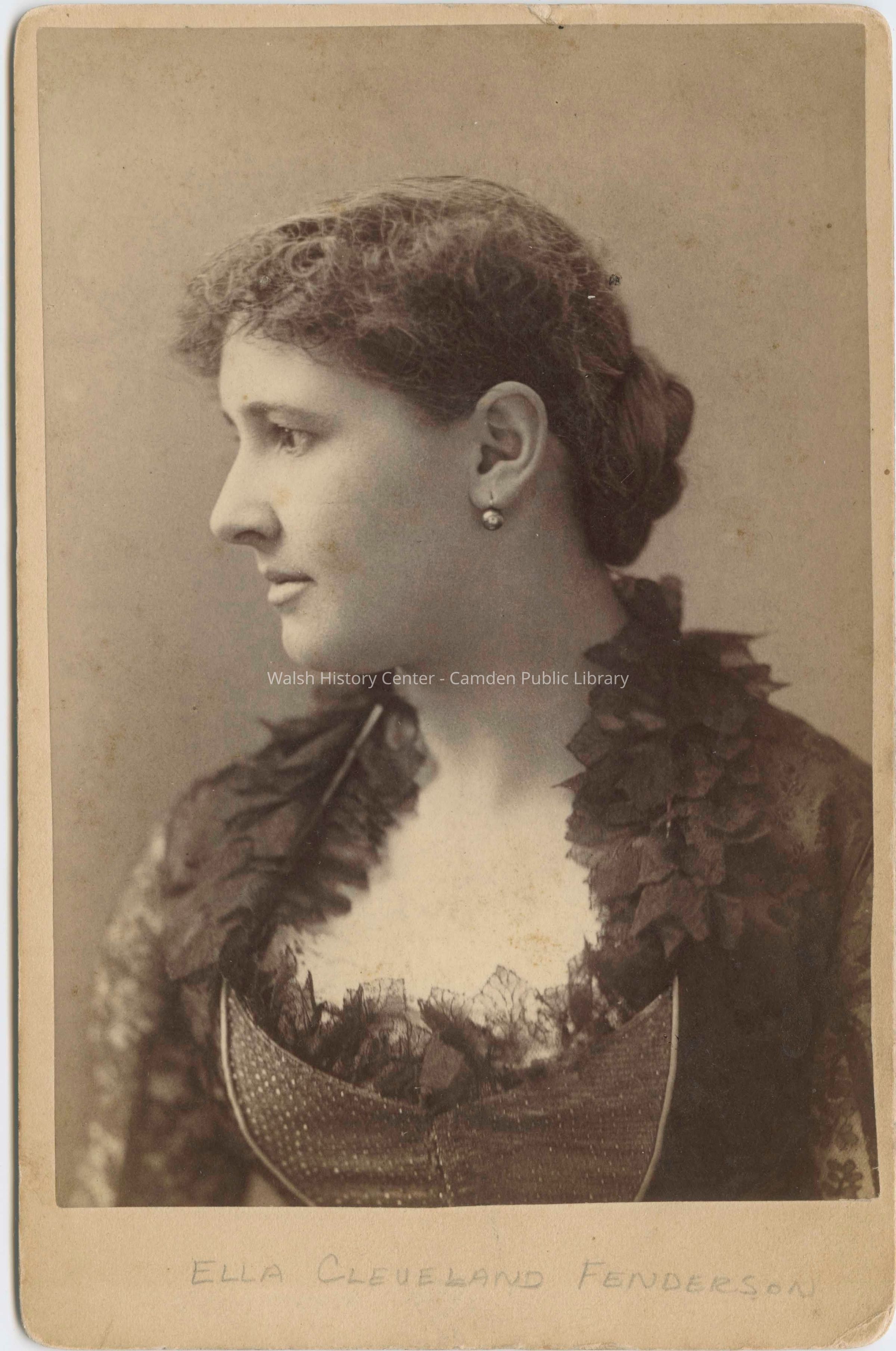 Sepia cabinet card photograph of Ella Cleveland Fenderson. Fenderson was a singer from Boston who owned a summer cottage at Lake City around 1900.Collection