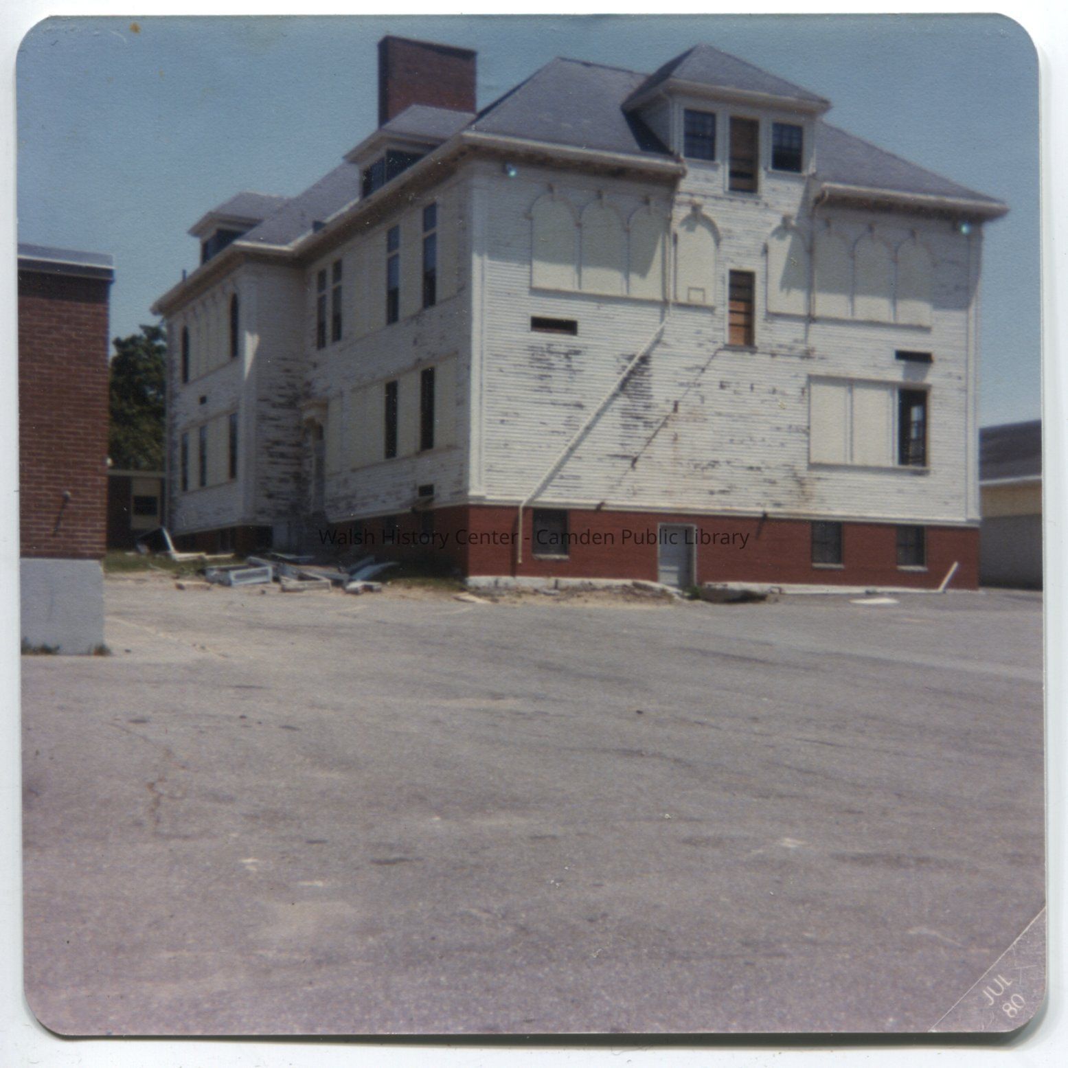 Series of photographs of the demoliltion of Camden High School on Knowlton Street. Built prior to 1905, the school had become unsafe and was torn down in July 1980.Collection