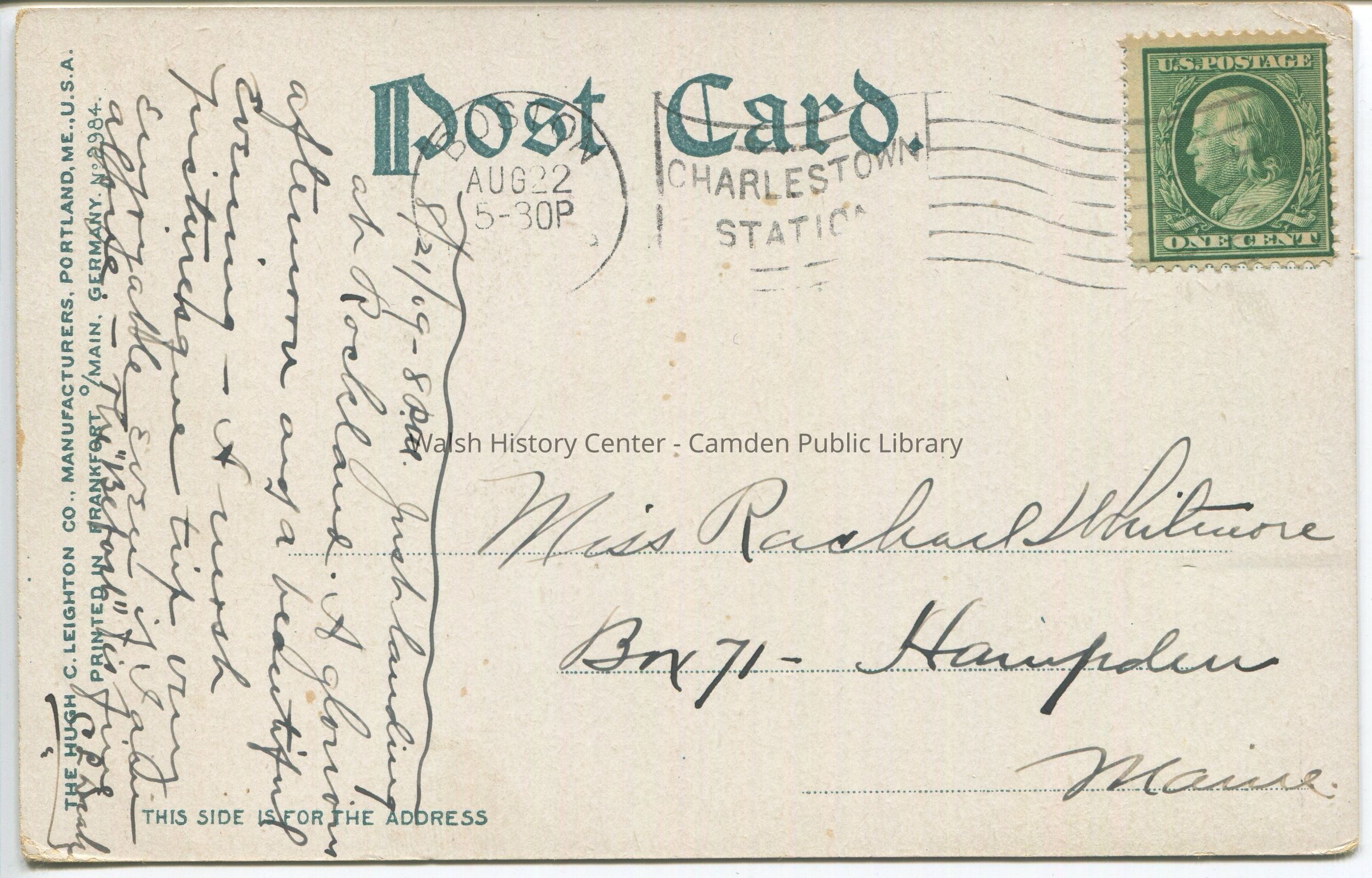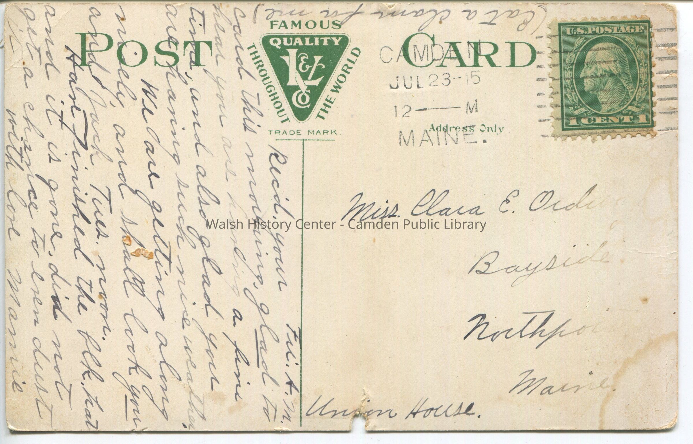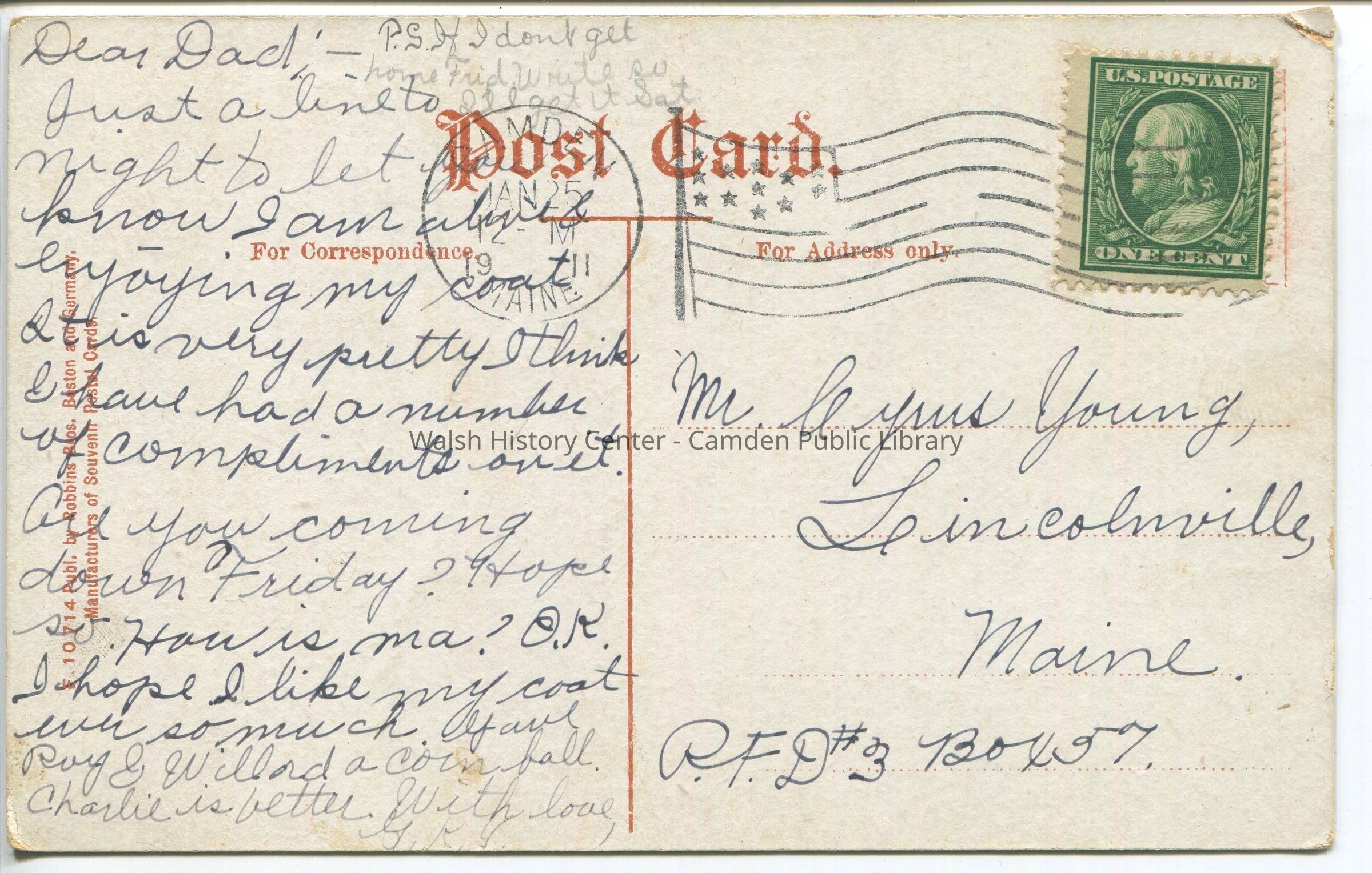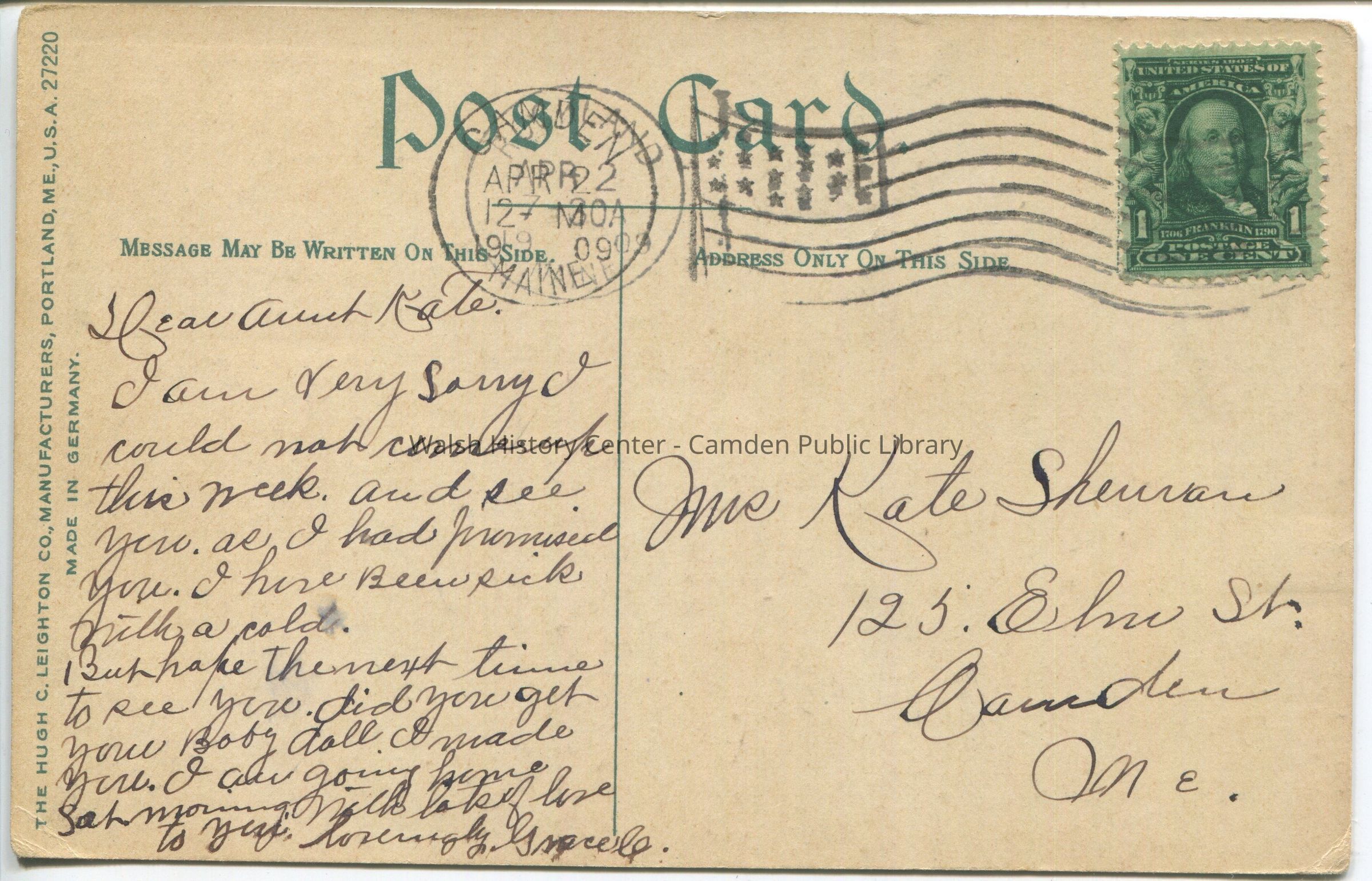 Postcards were loaned for scanning and returned.Collection