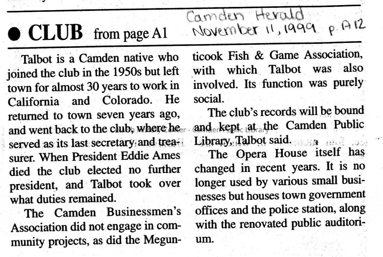 Original draft of meeting minutes founding the Camden Businessmens's AssociationCreator