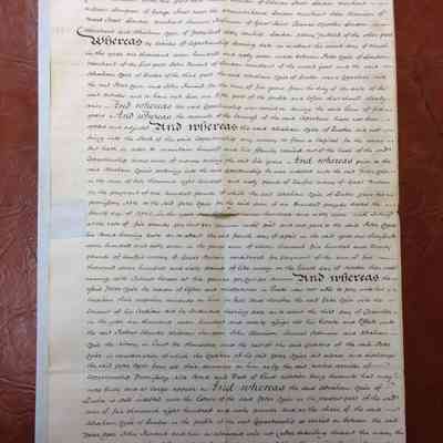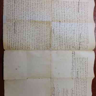 1773 Indenture on wove paper of 3 pages dated April 7, 1773, formally dissolving Abraham Ogier of Quebec from his partnership with a London based corporation seeking to profit from the establishment of a company in Quebec that Ogier oversaw.
