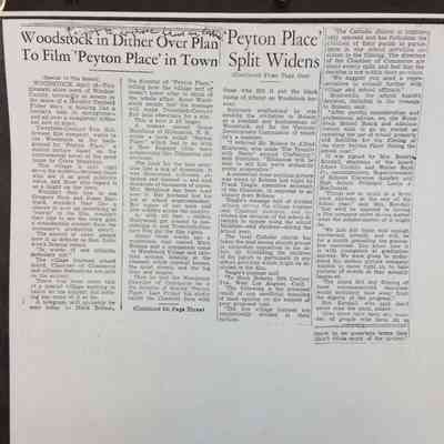 Scrapbook created by Doris Pitcher, librarian at Camden Public Library, Camden, Me., during the filming of Peyton Place in 1957, with other items added by later librarians. Based on a controversial novel of the same title by Grace Metalious, the film version of Peyton Place sparked controversy as well when 20th Century Fox attempted to secure a filming location. Camden became immersed in the movie, footage being filed the last two weeks of June in 1957, with approximately 500 townspeople involved as extras or stand-ins. Chiefly includes movie stills (1957), correspondence, and newspaper clippings (1957-1958) relating to the filming in Camden. Includes a map of filming locations in and around Camden.Collection