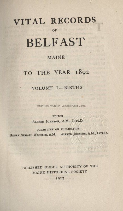 Belfast, Maine, Maine Historical Society, Genealogy, Vital recordsOther Names and Numbers