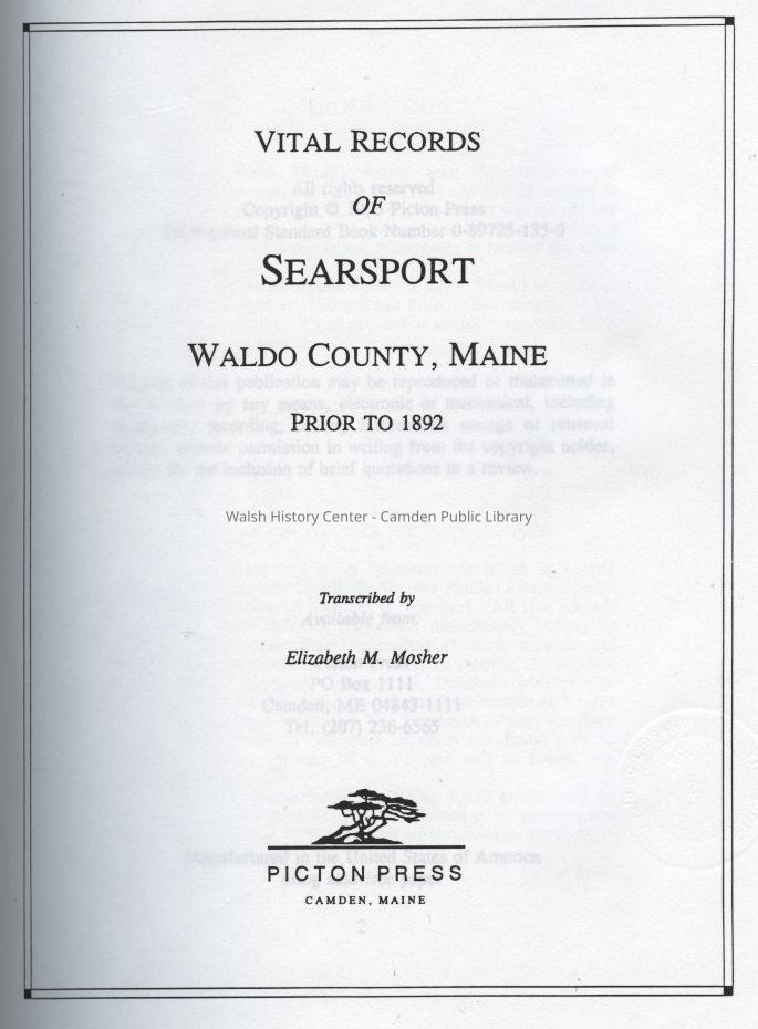 Vital Records of Searsport, Waldo County, Maine prior to 1892Entry/Object ID