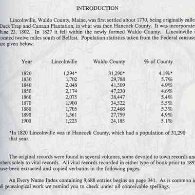 Vital Records of Lincolnville Maine prior to 1892.Entry/Object ID